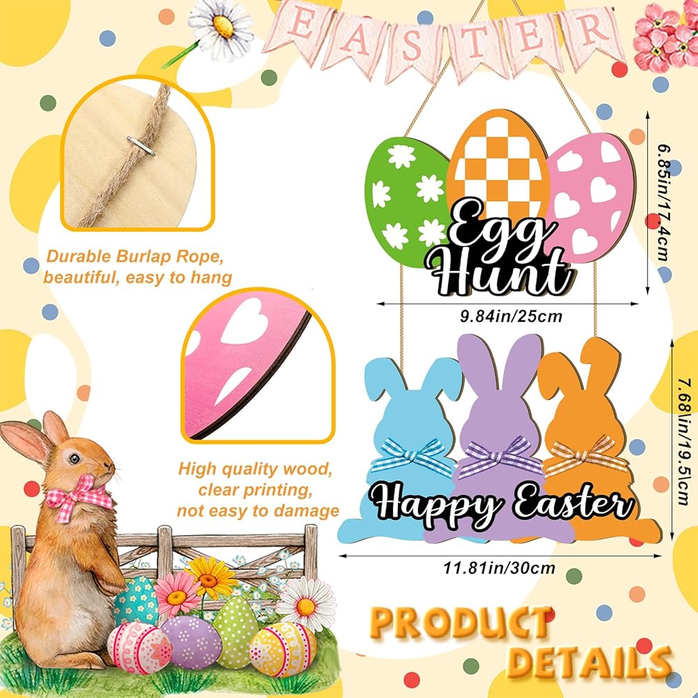 Reliable Wood Material: easter door sign is made of quality wood material, exquisite printed with bright patterns and colors, nontoxic and safe, not easy to fade, deform or break, smooth surface, no burr, can accompany you for a long time