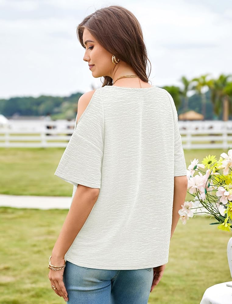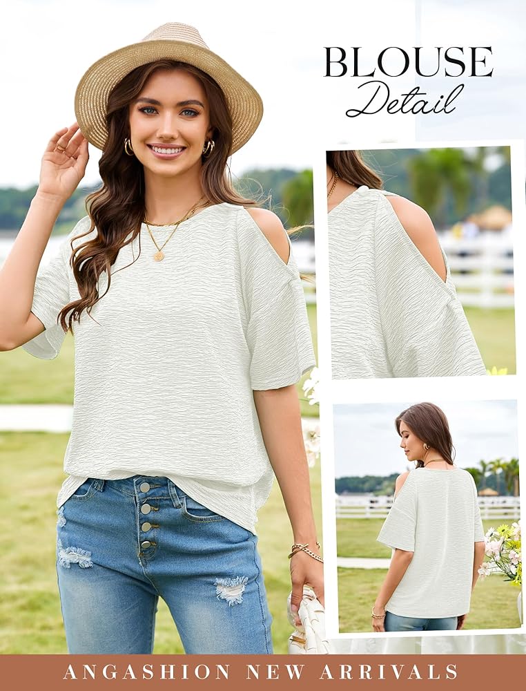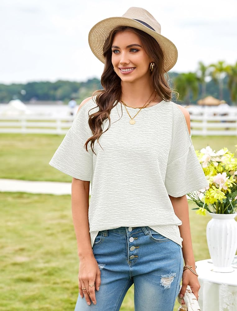 المواد: تمتع بأقصى درجات الراحة. هذه القمصان الصيفية النسائية مصنوعة من البوليستر بنسبة 1OO%، والنسيج خفيف وناعم الملمس وجيد التهوية. توفر لك القمصان ذات الكتف البارد للسيدات تجربة ارتداء مريحة وشعورًا رائعًا في الصيف، قمصاننا مثالية للربيع والصيف.