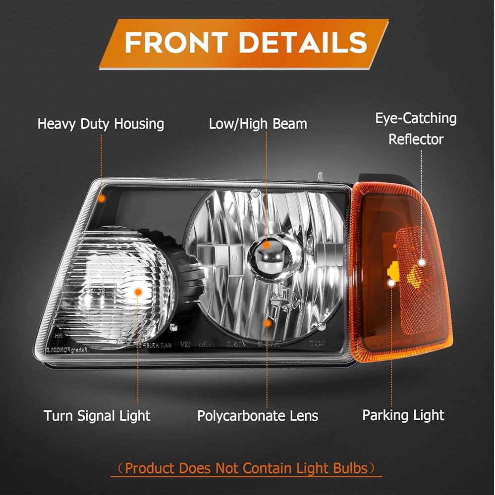 【اللون والمصباح】- عدسة شفافة عاكسة للضوء باللون الأسود؛ نوع المصباح: هالوجين/ليد؛ الشعاع العالي: 9007، الشعاع المنخفض: 9007، ضوء الإشارة: 3157A (المصابيح غير متضمنة، يرجى العلم)