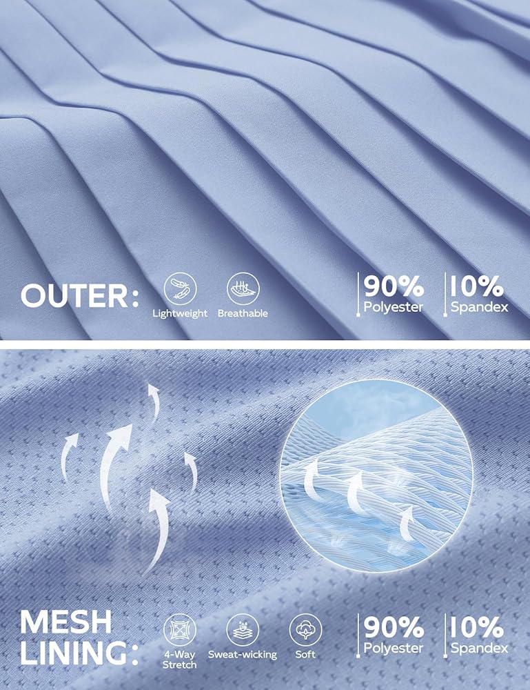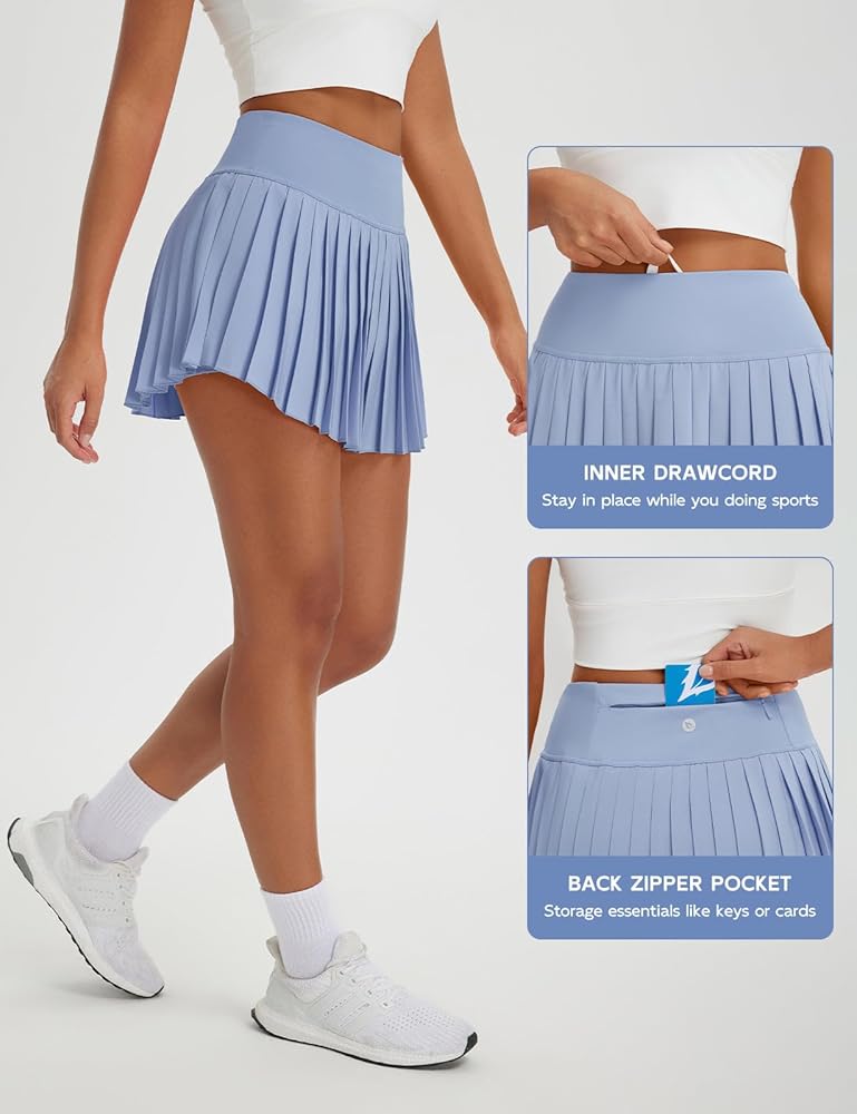 • 【عالية الخصر مع رباط داخلي】يوفر حزام الخصر العالي المرن العريض تحكمًا خفيفًا في البطن ورباط مدمج يضمن بقاء تنورة التنس في مكانها. لا يتدحرج أو يتحرك - فقط يوفر الراحة طوال اليوم.