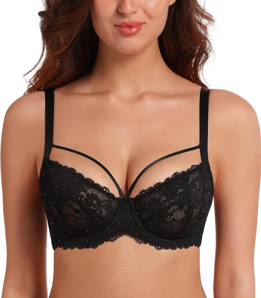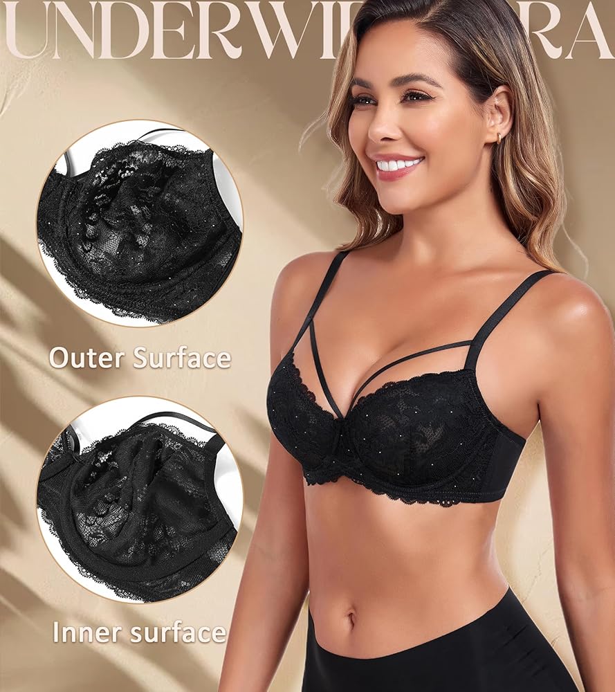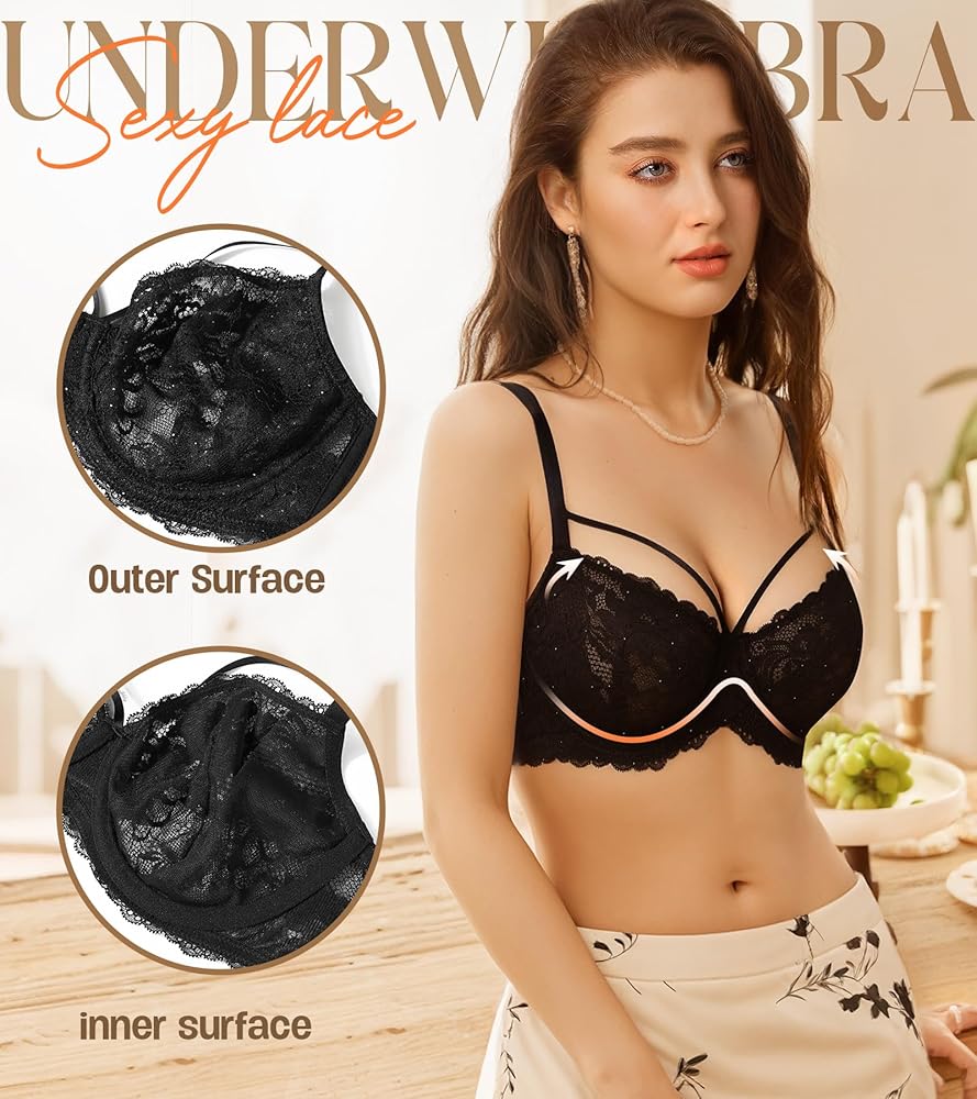 تصميم بسلك داخلي: حمالة الصدر الجميلة مزودة بسلك سفلي للدعم والرفع دون إضافة حشوة، لتجعلك تشعرين براحة أكبر وصديقة للبشرة. تم تصميم حمالة الصدر الدانتيل هذه لدعم ثديك مع إعطائه شكلاً أنيقًا.