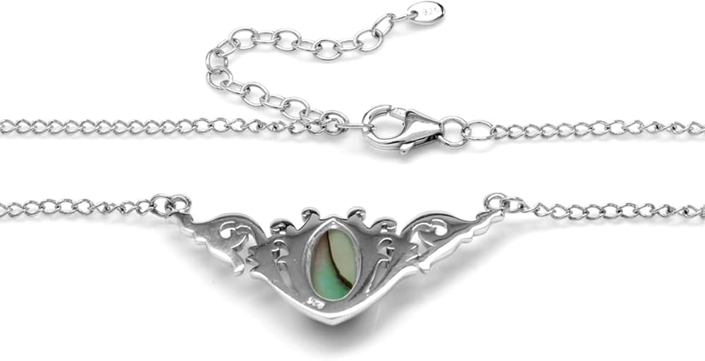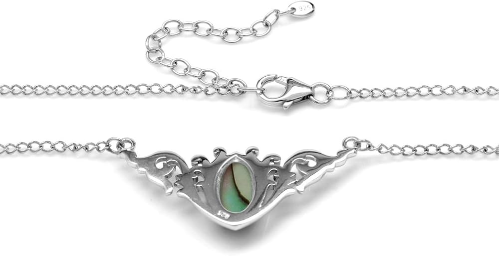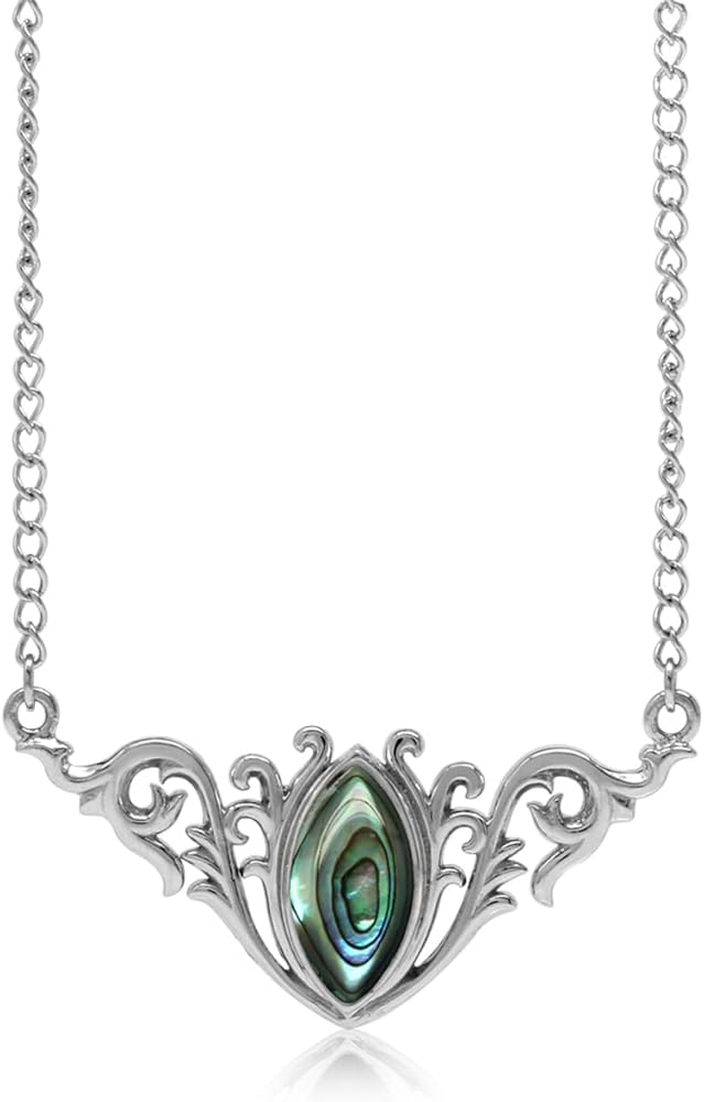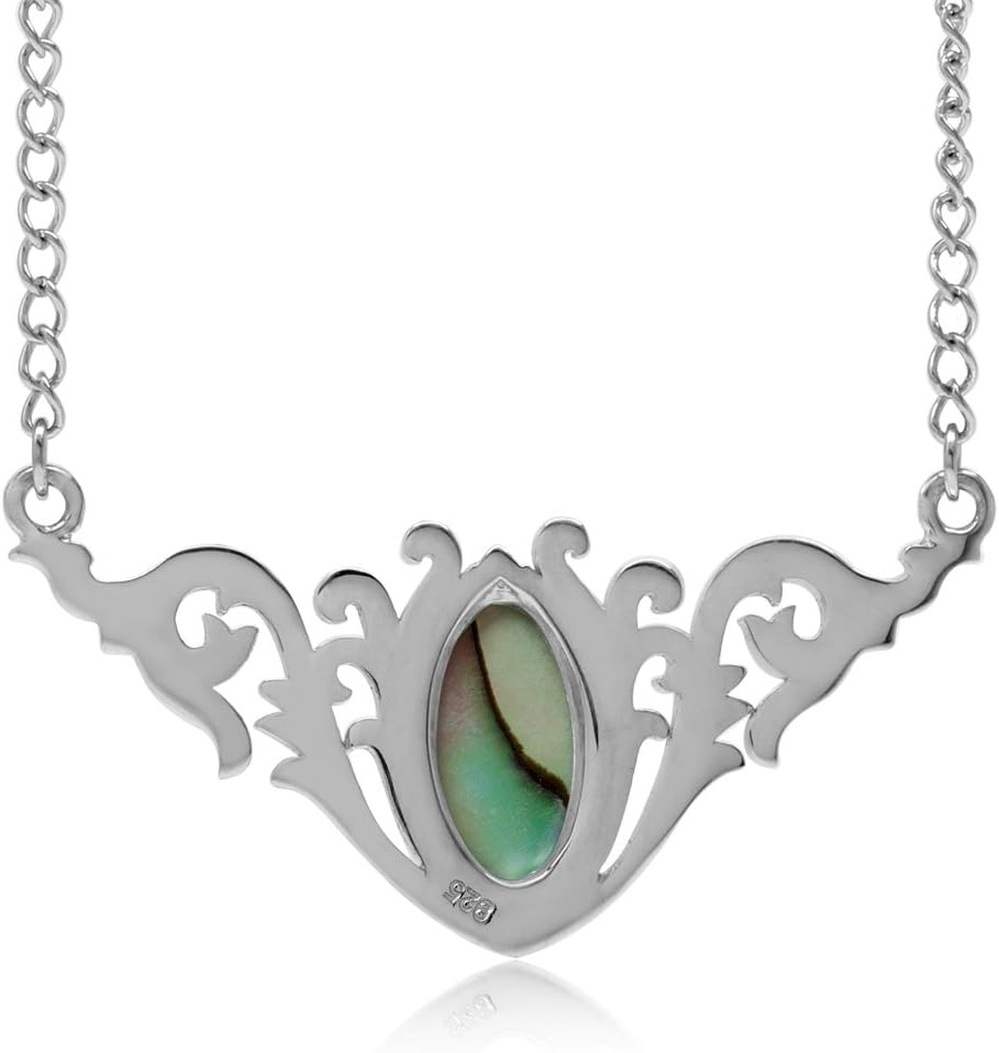 Silvershake Bezel Set Marquise Cut Cabochon Stone 925 Sterling Silver Baroque Inspired Pendant with 16-18 Inch Adjustable Chain Necklace Jewelry for Women