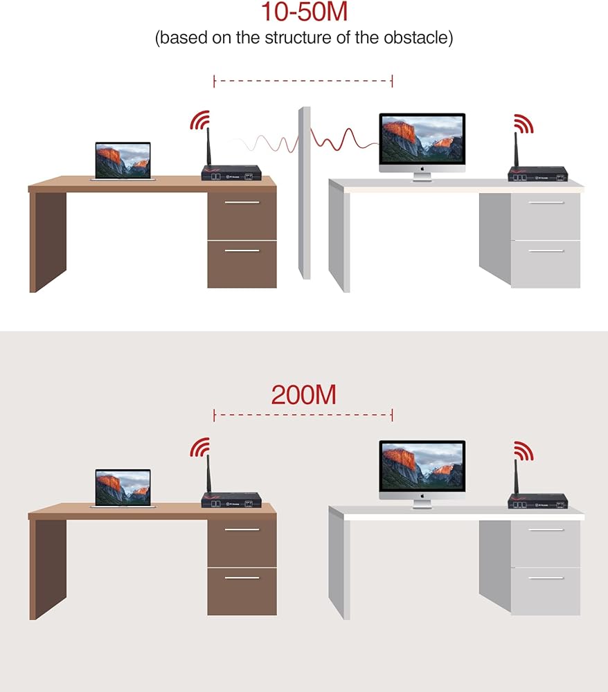 • ✔ يمتد إشارة HDMI عالية الدقة 1080P لاسلكيًا حتى 2 00 م/656 قدم في مجال مفتوح دون تدخل. ينقل 10 م - 50 م (32 قدمًا - 165 قدمًا) من خلال جدار جاف داخلي أو أي عوائق أخرى، ثابت وموثوق.