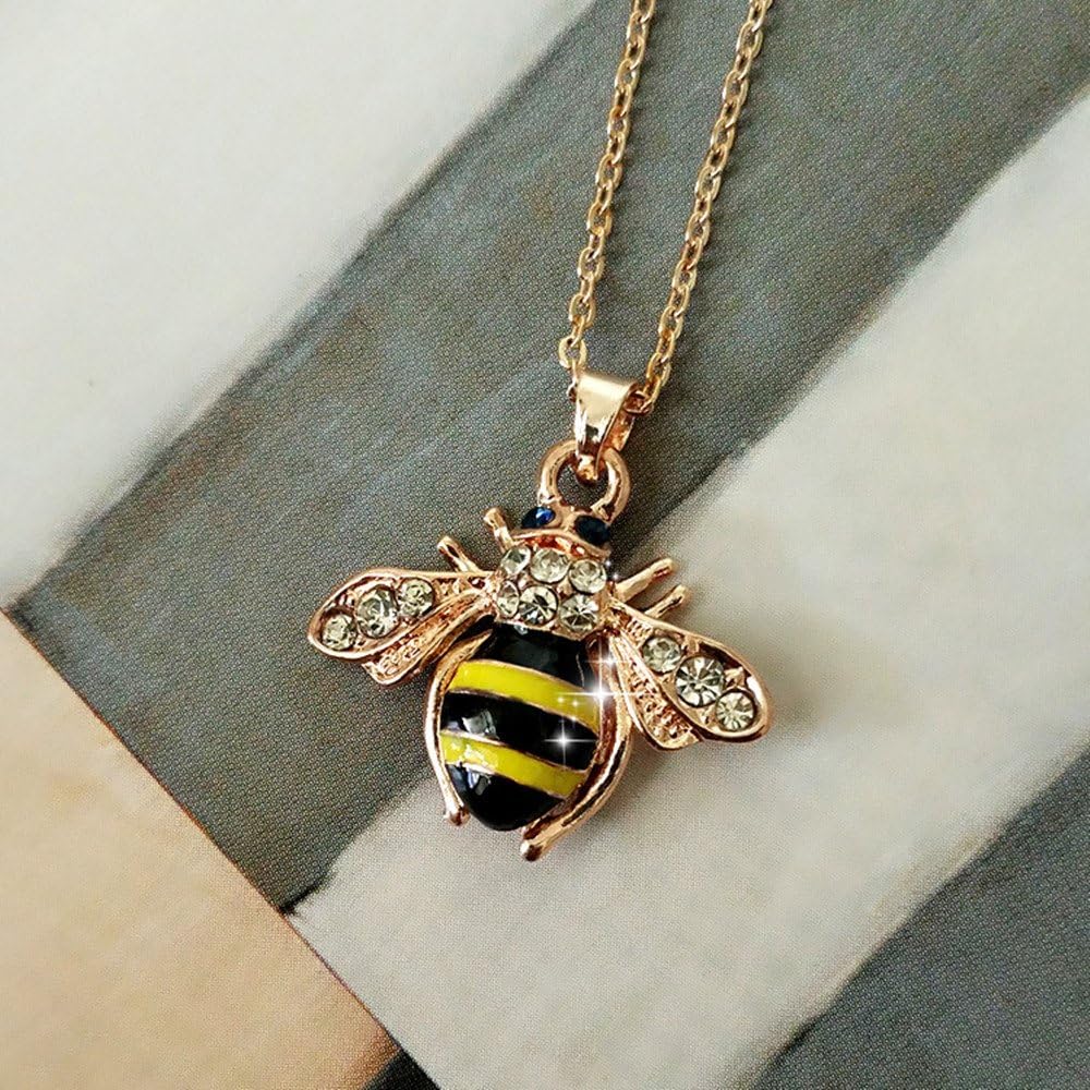 قلادة أنيقة من الكريستال الأصفر على شكل نحلة صغيرة ملونة مصقولة بالتنقيط وعسل النحل الصغير