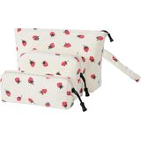 حقيبة مكياج مطورة: مقاس 10.2 بوصة * 7 بوصة * 2 بوصة - منظم كبير مع 2 * جيوب داخلية يمكنها فرز أحمر الشفاه وظلال العيون والمراهم والمسحة.. يمكن أن تحتوي على غسول وشامبو لمنتجات العناية بالبشرة أو مجموعات المكياج. حقيبة متوسطة: 6.7 بوصة *3.7 بوصة * 3 بوصة. حقيبة صغيرة: 8.26 بوصة * 2.5 بوصة. 3 قطع مختلفة الحجم من حقيبة الغسيل يمكنها تخزين المكياج فرش وفرشاة الأسنان وغيرها من العناصر التي تحتاج إليها