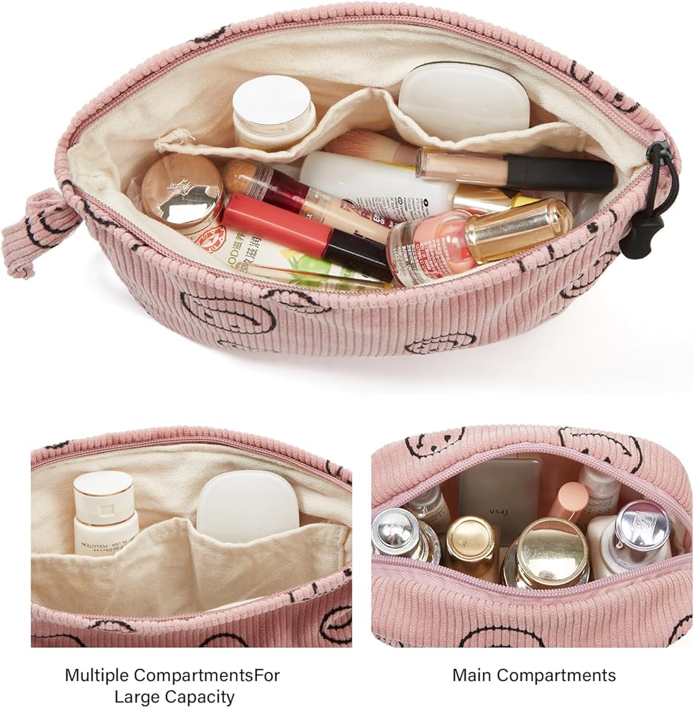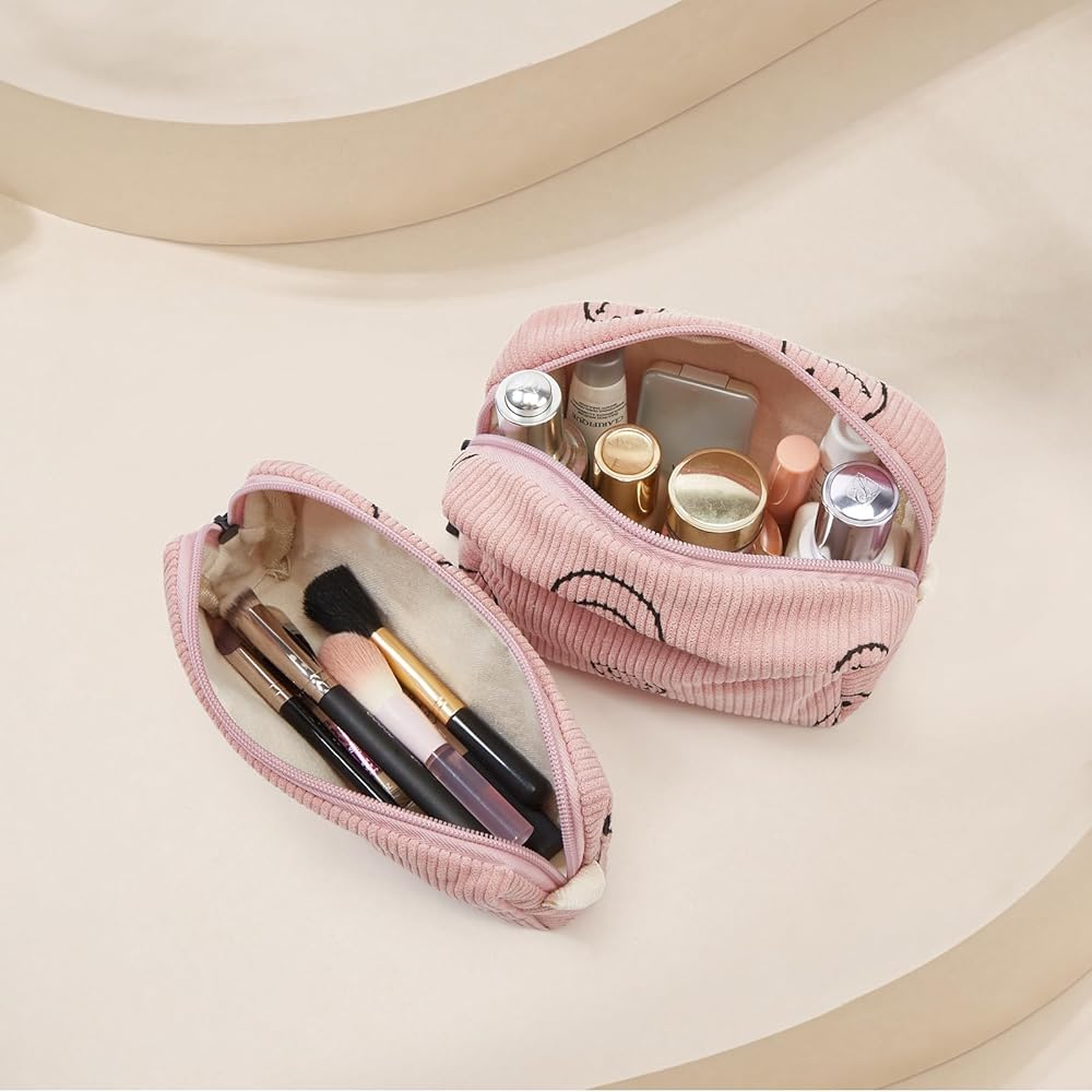 حقائب مكياج عملية: مصنوعة من سروال قصير مع ابتسامات، والجزء الداخلي مبطن بالقماش - سهلة الغسل في الغسالة وتعليقها بواسطة الحلقات، حقيبة المكياج هذه ضرورية للسفر