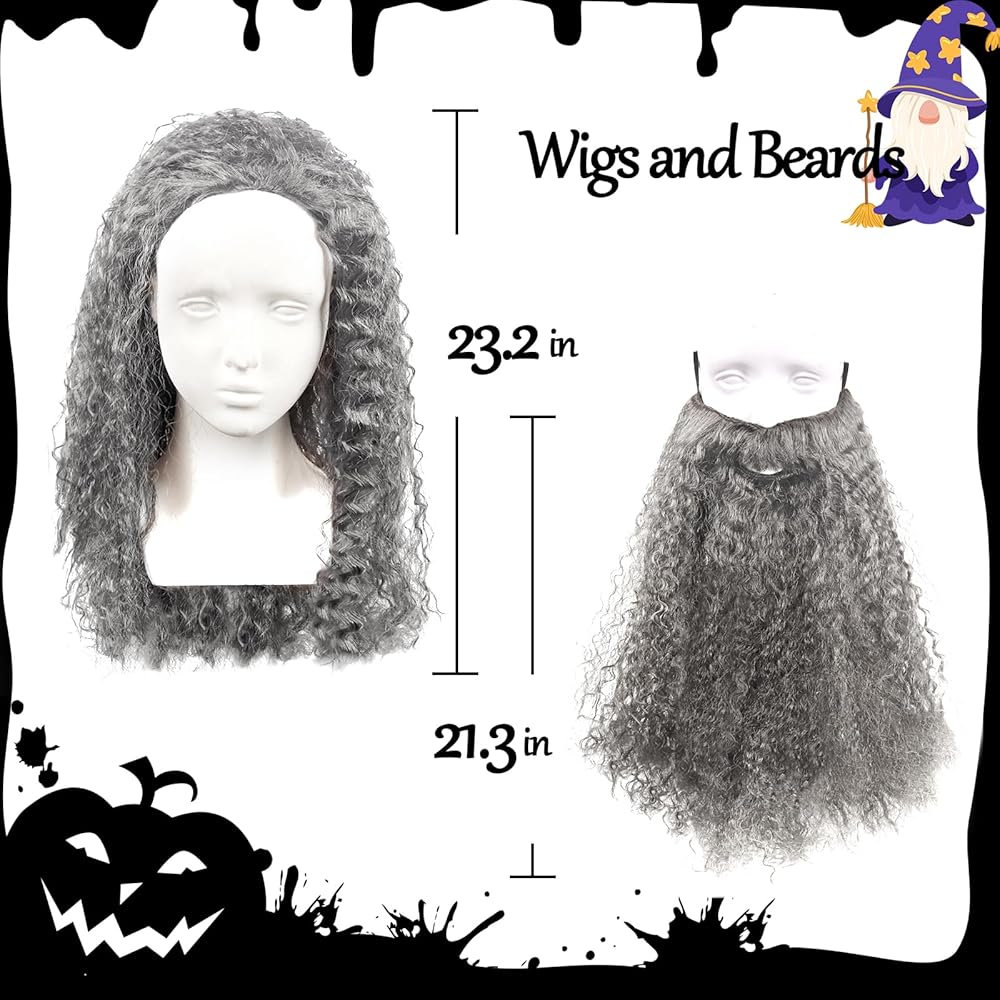 In the mystical atmosphere of Halloween, this wizard's wig will take you on an instant journey into the fantastical world of Middle-earth. When the Halloween pumpkin lights come on, it's meticulously crafted to perfectly capture the essence of the wise and powerful wizard, and with that long flowing beard, it's as if you've come from the magic of Halloween. Whether you're going to a Halloween masquerade party, heading to a fantasy convention, or just indulging in the whimsical fun, this wig will take your costume to magical new heights with the magic of Halloween. High-quality synthetic fibers have been artisanally designed to highly mimic the iconic look of witches from the beloved film series, ensuring an authentic look on Halloween night. Its off-white hue and intricate weave allow you to instantly transform into a mysterious and enigmatic figure during the Halloween revelry, earning respect and awe wherever you go. And with its comfort and ease of wear on Halloween, this wig is a must-have for witch enthusiasts or anyone who wants to embrace their inner witch this night. Step into the realm of Halloween fantasy in this enchanting witch wig and let your imagination soar on this special night!