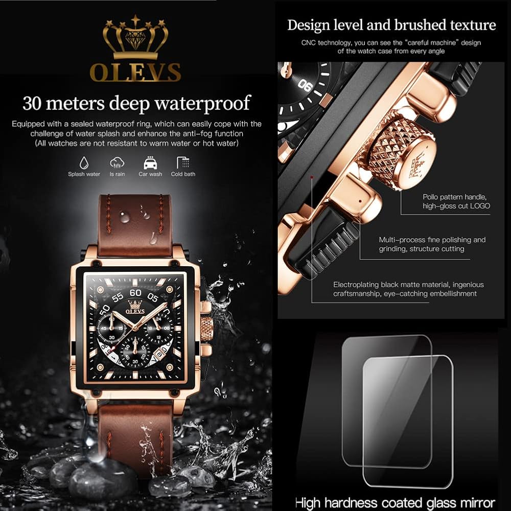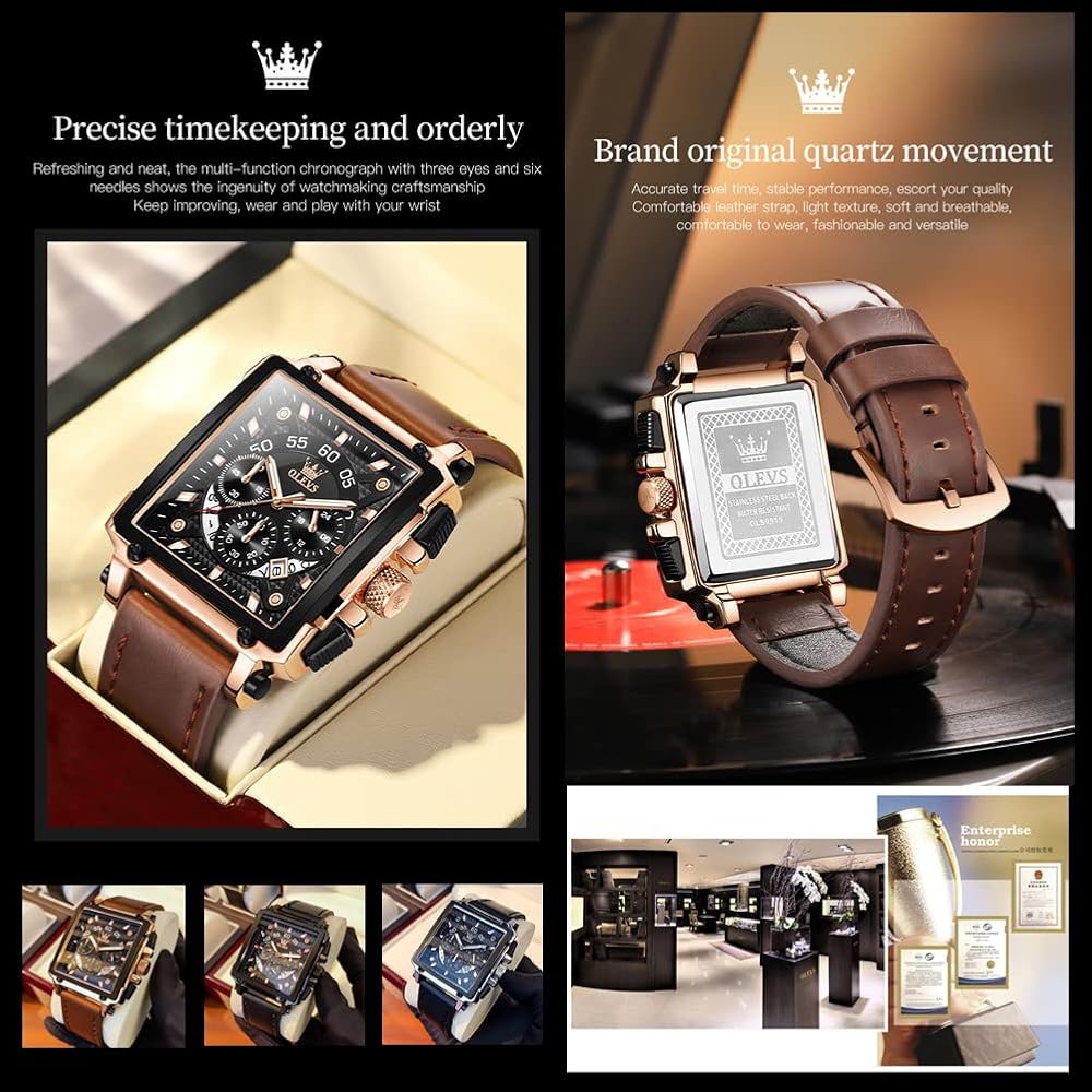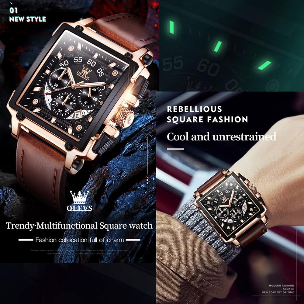 【نوع الساعة】ساعة رجالية من الجلد البني/ساعات مربعة كلاسيكية للرجال، ساعة مربعة عصرية متعددة الوظائف، تشكيلة عصرية مليئة بالسحر، تنفذ القوة الإبداعية للمافريك، مظهر جميل، تفاصيل رائعة، هذه هي الساعة المثالية، أفضل ساعة للرجال أيها الرجال، أنت تستحق الأفضل حتى تبدو بمظهر لا يمكن إيقافه وتشعر به. لأنه عندما تبدو بمظهر جيد، تشعر أنك بحالة جيدة، وعندما تشعر بحالة جيدة، يمكنك فعل أي شيء.
