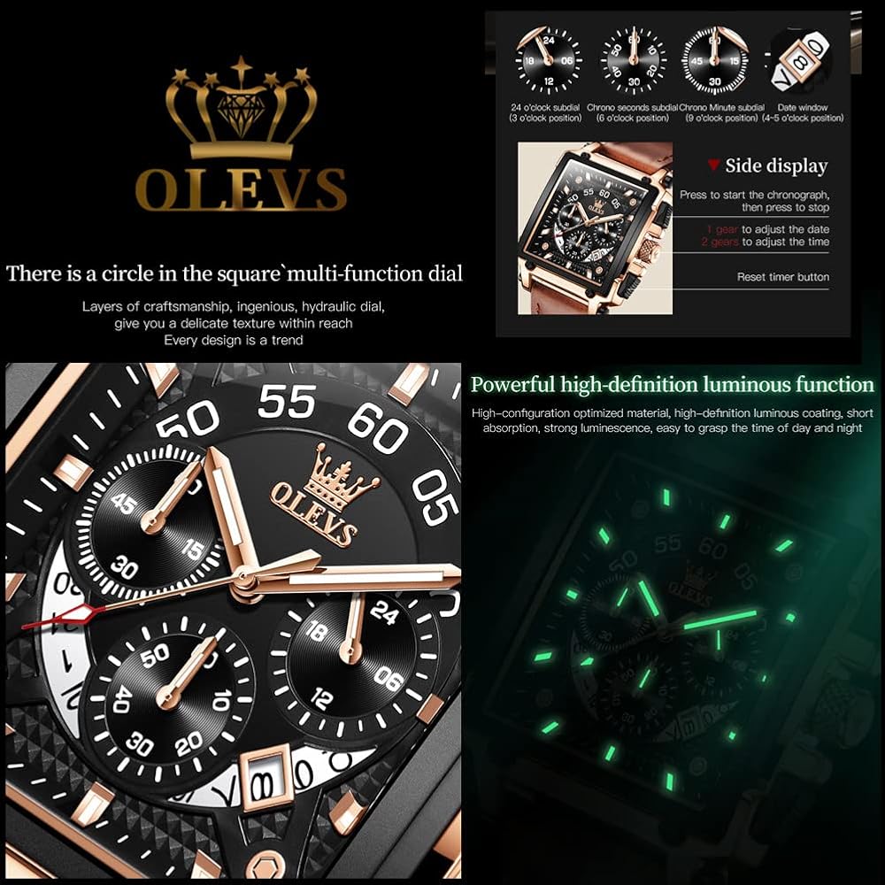 【تسوق آمن】تقدم OLEVS 30 يومًا بدون سبب للإرجاع وضمان لمدة عام واحد للمنتجات المباعة تحت العلامة التجارية. تتميز الساعة بتصميم عصري وأنيق مع صنعة متقنة، وتبدو عالية الجودة. يمكن مطابقتها مع مجموعة متنوعة من الملابس، ومناسبة مناسبات مختلفة. يمكن أن تكون ساعة اليد هذه هدية رائعة لعائلتك وأصدقائك (عيد الأب، عيد الميلاد، الكريسماس، الذكرى السنوية، موسم الطلاب، التخرج، هدايا عيد الحب و هدايا يوم الصداقة).