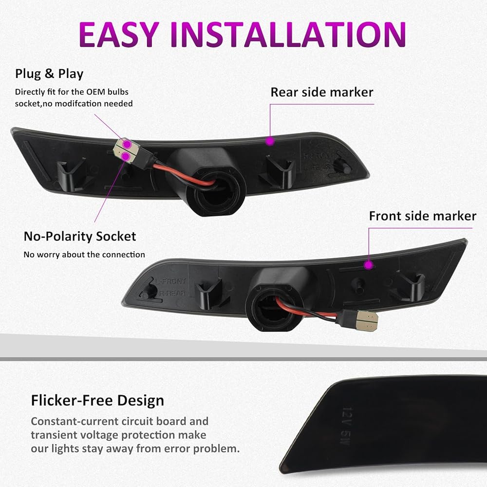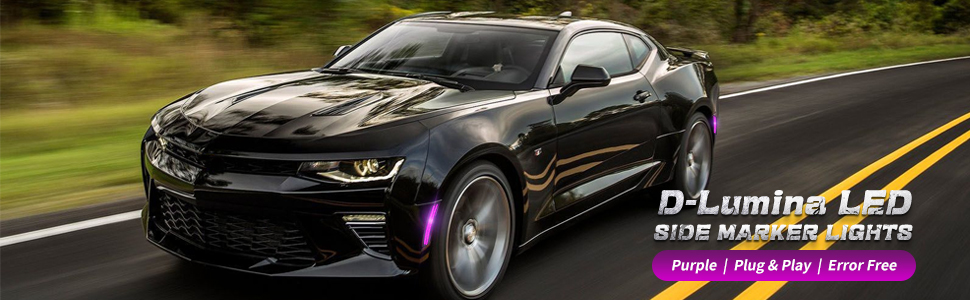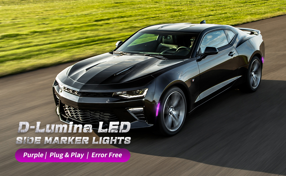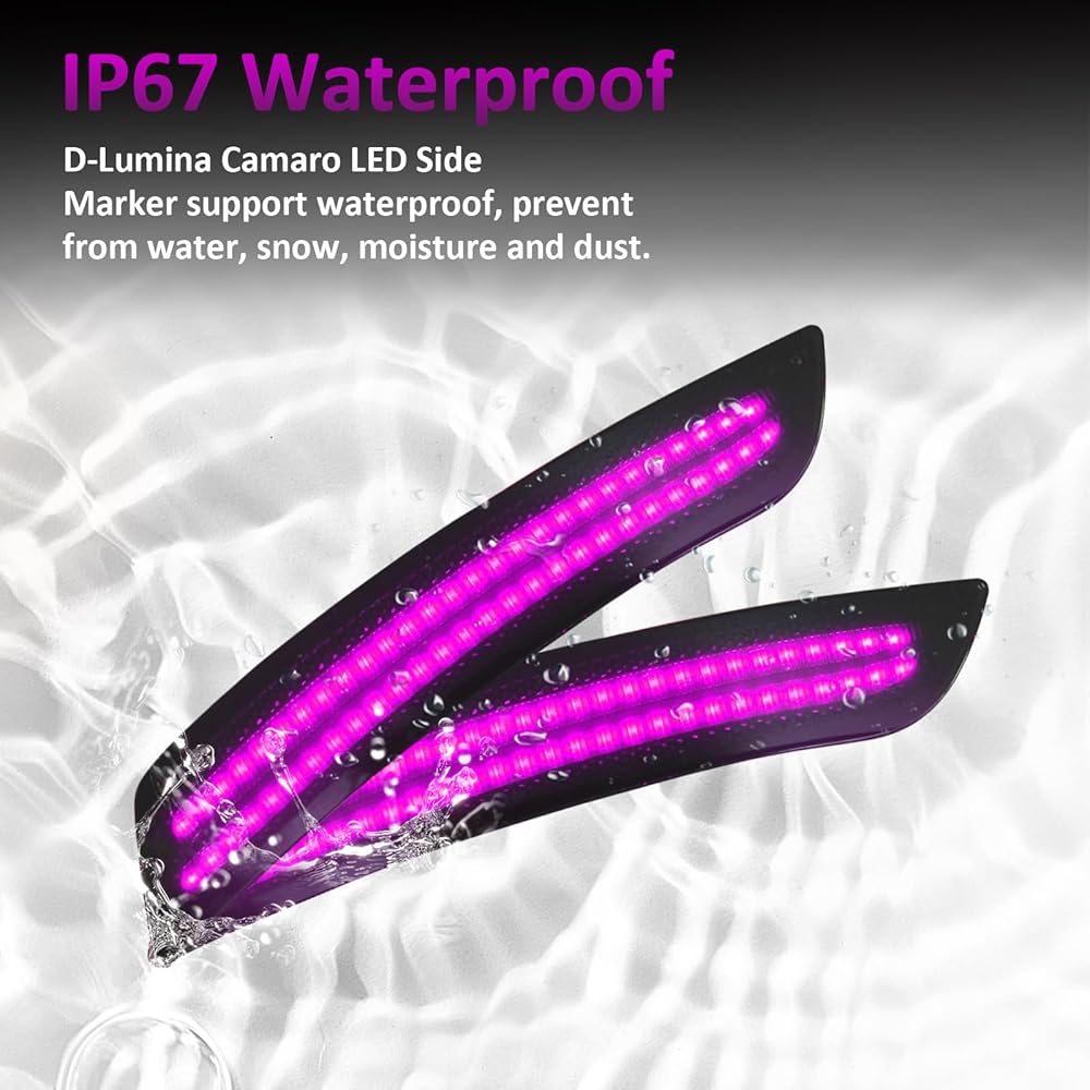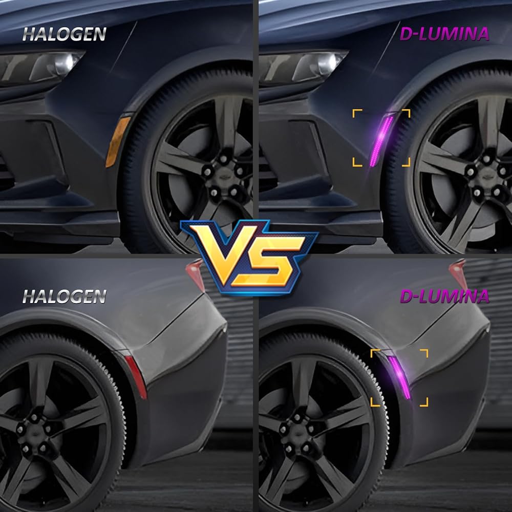 مصابيح LED للعلامات الجانبية من D-Lumina عدسات مدخنة لسيارة Chevy Camaro 2016-2024، مصابيح المصد الأمامي والخلفي للجيل السادس من Camaro باللون الوردي والأرجواني، عبوة من 4 قطع