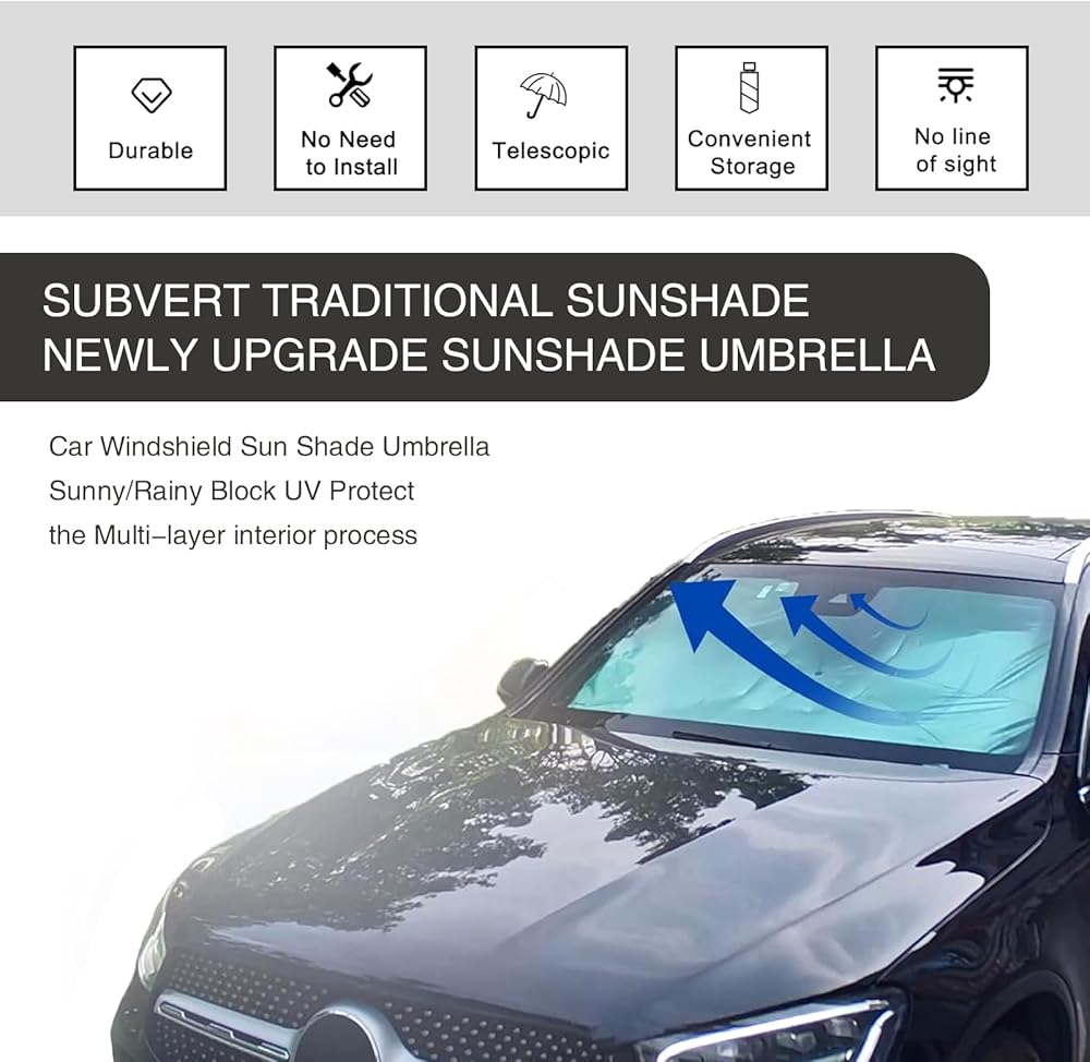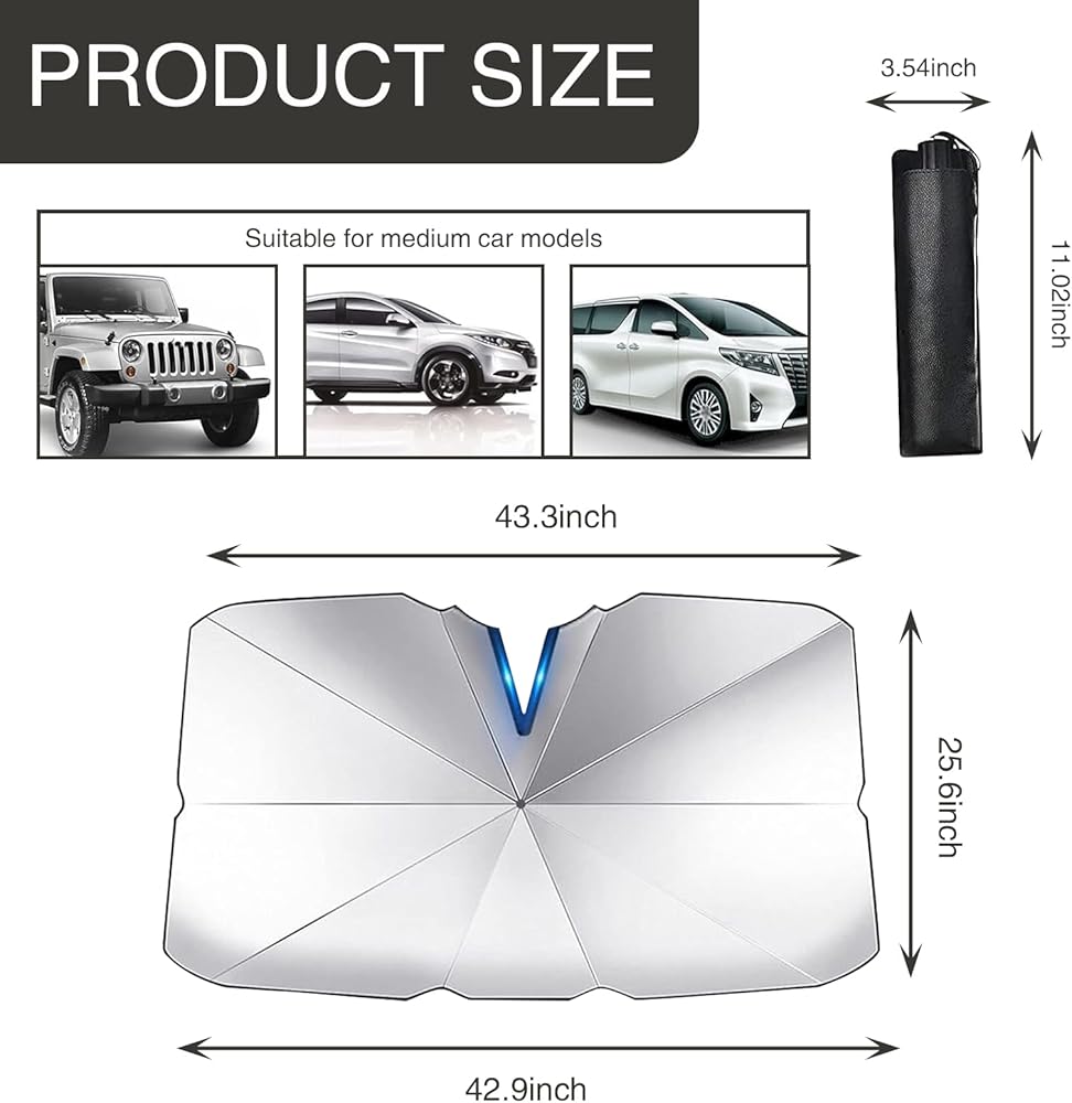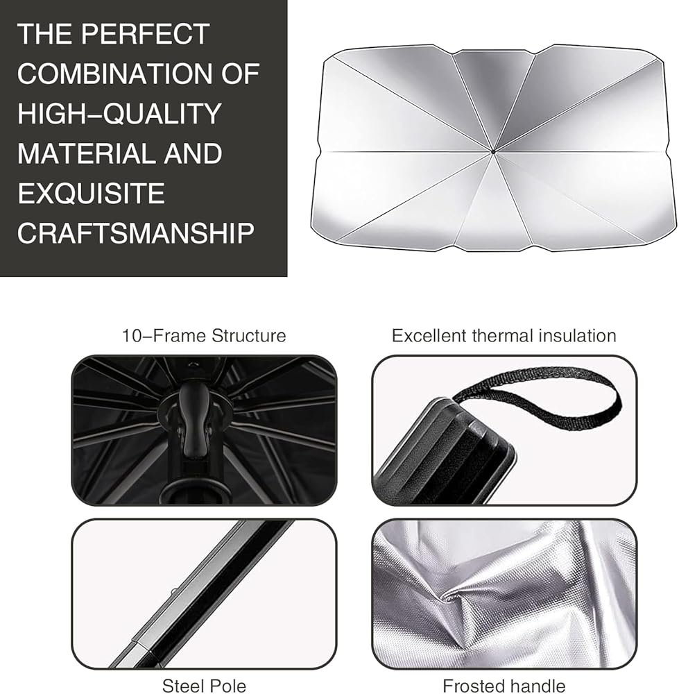 Telescopic Design: This car front windshield sunshade adopts a ten-bone umbrella design, and the telescopic length can be freely adjusted according to the size of the windshield to adapt to different sizes of car windshields.