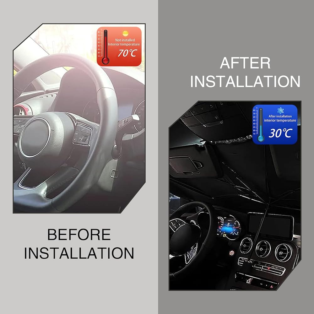 Foldable: This product is easy to store and carry. It can be folded into a compact size and does not take up space in the car. It is easy to carry and place, and can be used anytime. Installation is quick and easy, just unfold the sunshade and place it on the windshield to secure.