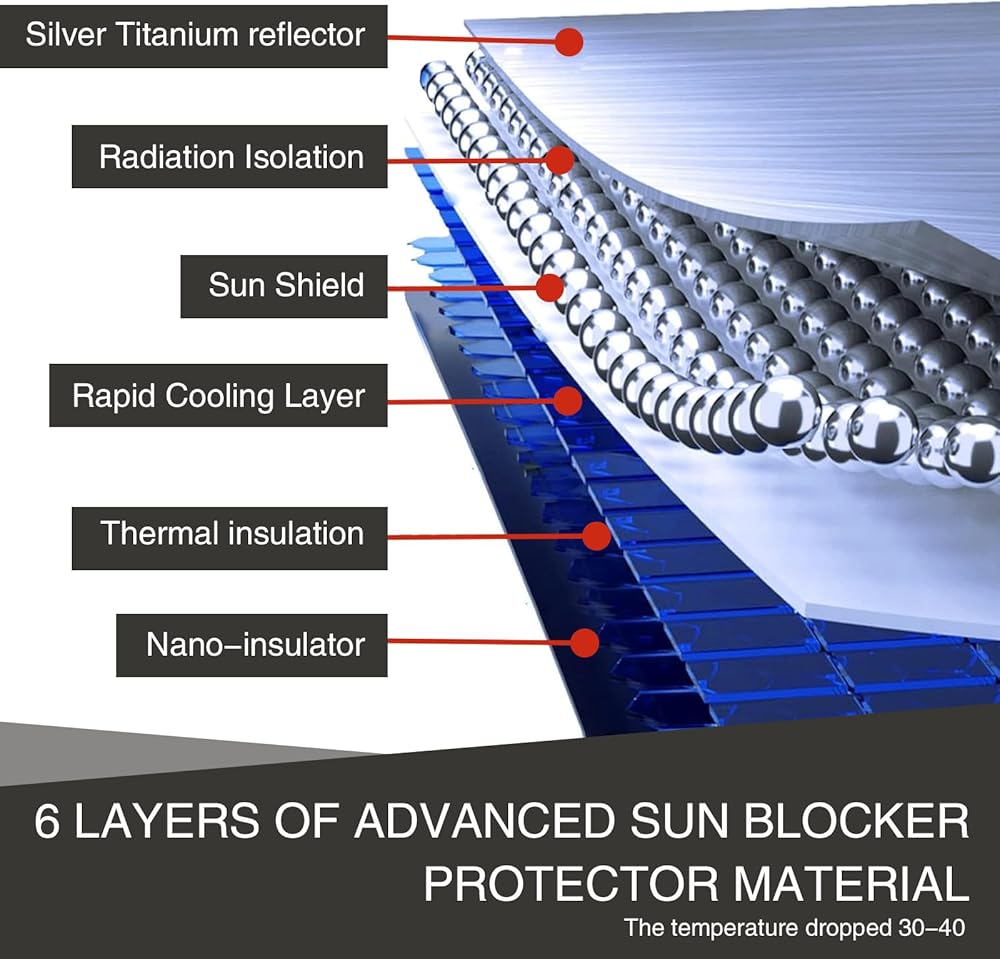 Sunshade and Sun Protection: This product effectively blocks direct sunlight, reduces the temperature inside the car, protects the car's interior seats, center console, instrument panel and other interiors from sunlight exposure, and improves driving comfort.