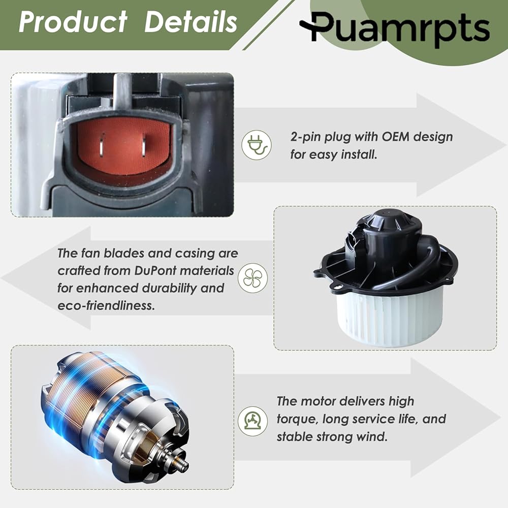 [الوظيفة]: تم تصميم محرك المنفاخ البديل الخاص بنا لإحياء نظام تكييف الهواء الخاص بك بسرعة، مما يجعله يعمل بفعالية مرة أخرى. إذا لاحظت أن مكيف الهواء أو المدفأة لديك لا تضخ هواءً ساخنًا أو باردًا، فقد يكون ذلك مؤشرًا على وجود مشكلة في محرك المنفاخ.
