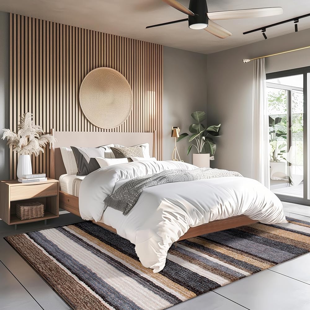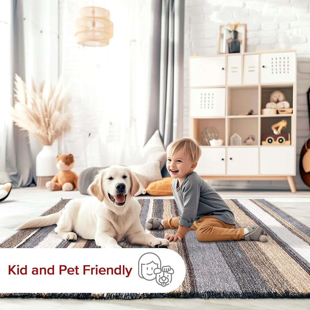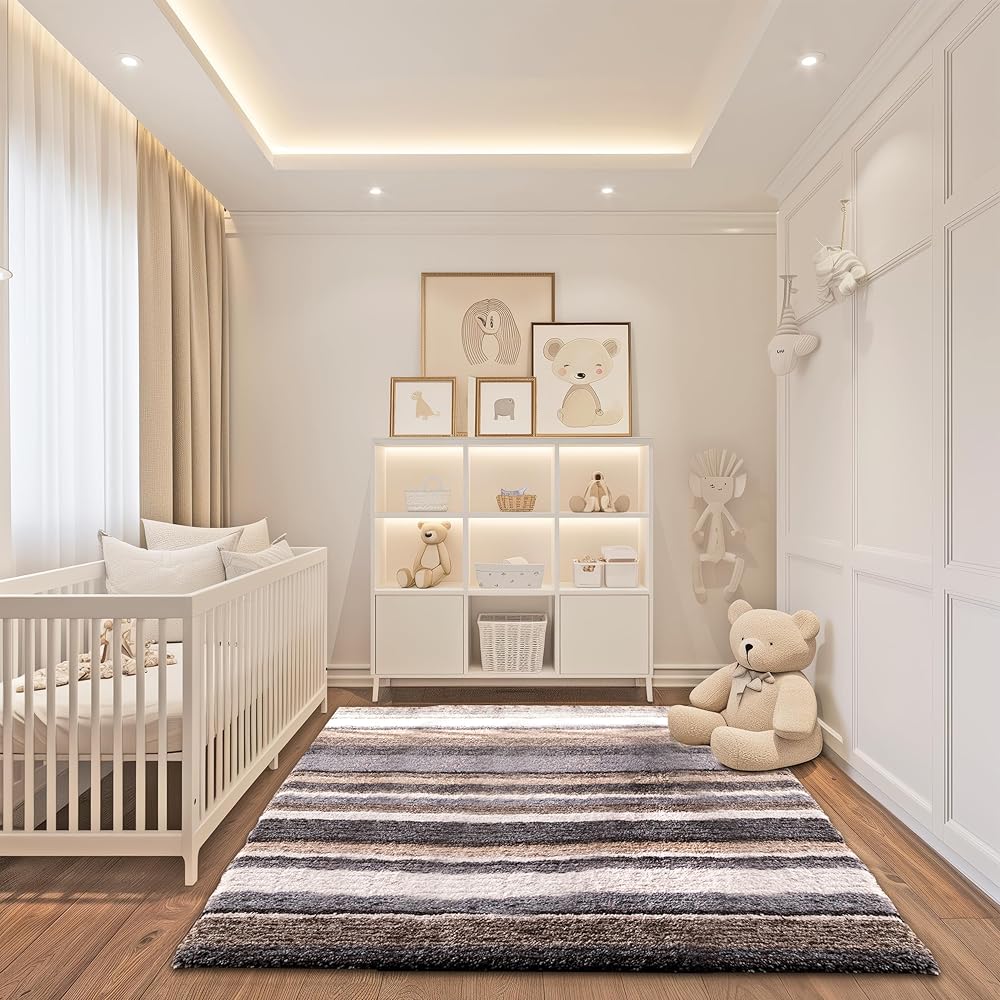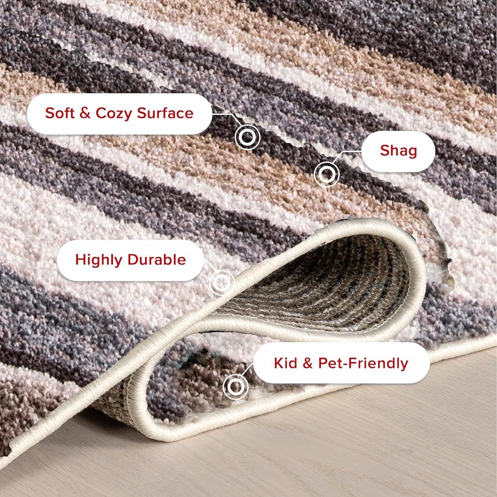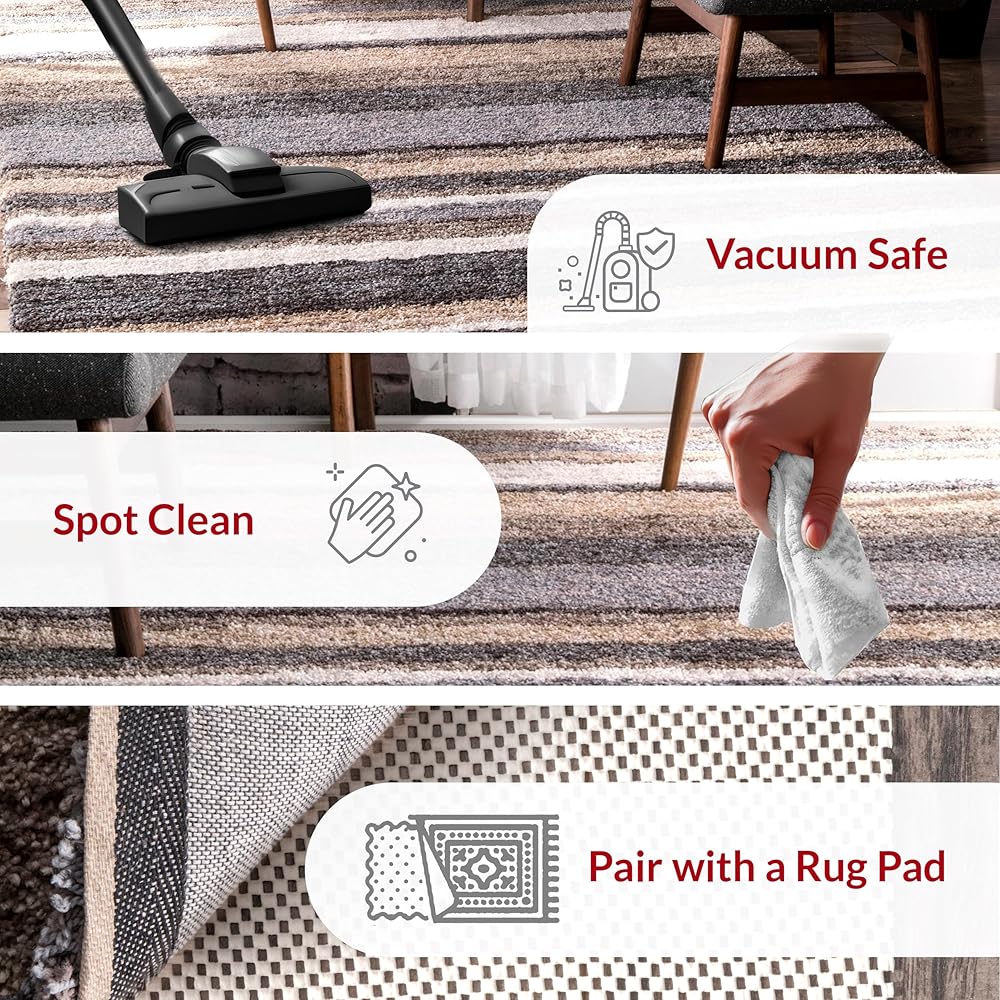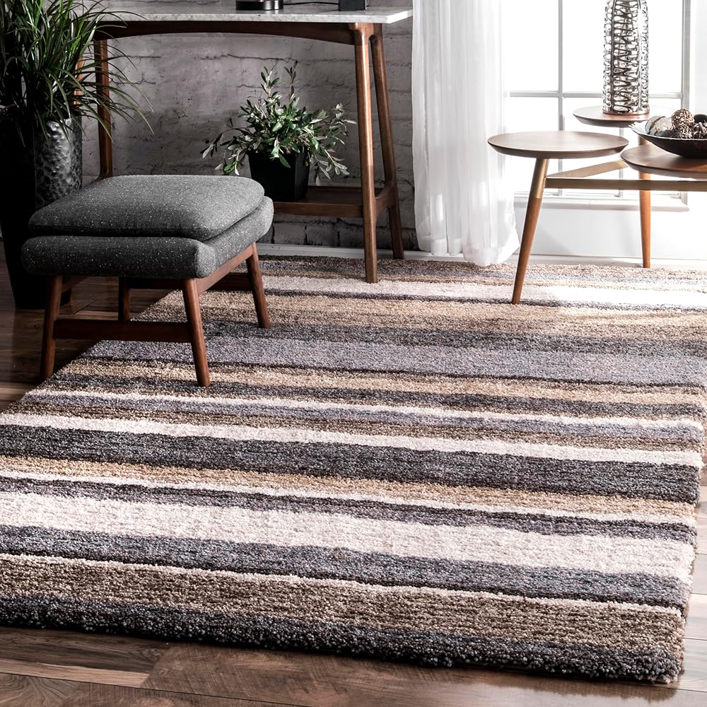 Our nuLOOM Drey Striped Shag Area Rug is a selection of area rugs, perfect for enhancing the style and comfort of your living spaces. Whether you're looking for a rug for your living room or bedroom, we have a wide range of options to suit your needs. Our area rugs come in various sizes, from small rugs to large area rugs, making them suitable for any room. For a cozy and casual look, consider our striped rugs, available in 5x8 size. Our indoor rugs are made from 100% polyester and are suitable for indoor use only. Its timeless striped pattern adds a touch of elegance to any space, while the cut pile construction ensures a plush and luxurious feel underfoot. This rug is designed to be slip-resistant, providing safety and stability on any flooring surface. They are also available in synthetics, making them easy to clean and maintain. Our rugs are soft and comfortable, adding a touch of warmth and elegance to your living room, dining room, nursery room, bedroom, and office. For a more affordable option, check out our clearance rugs section. Our living room rugs are perfect for adding a pop of color and texture to your living room, while our living room carpet provides a soft and comfortable surface for your feet. Our room rugs for the bedroom and soft rugs for the nursery room, bedroom, or office are ideal for creating a warm and inviting atmosphere in your spaces. Our large rugs are for the living room and large rugs are also for the dining room, nursery room, bedroom, and home office. Upgrade your space with our indoor rug that brings together comfort, style, and durability in one beautiful package. Browse our collection today and find our nuLOOM Drey Striped Shag Area Rug for your home.