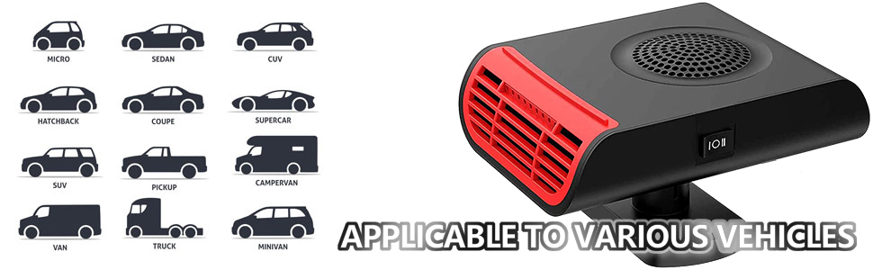 تصميم سخان وتبريد 2 في 1: سخان السيارة 150 وات 12 فولت يحتوي على وضعين للاختيار من بينها، مروحة طبيعية أو مروحة ساخنة، يمكن للهواء الساخن إزالة الضباب أو الصقيع من الزجاج الأمامي للسيارة، مما يمنحك تجربة قيادة أكثر وضوحًا، ويمكن إزالة الهواء البارد روائح السيارة والحفاظ على الهواء النقي