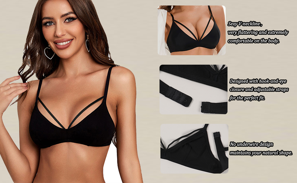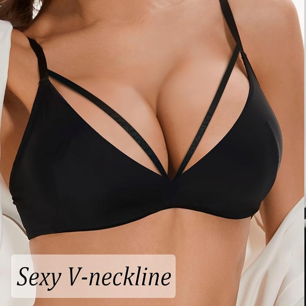 - غير مبطن، بدون أسلاك داخلية، خط عنق على شكل حرف V، حمالة صدر بدون خياطة.