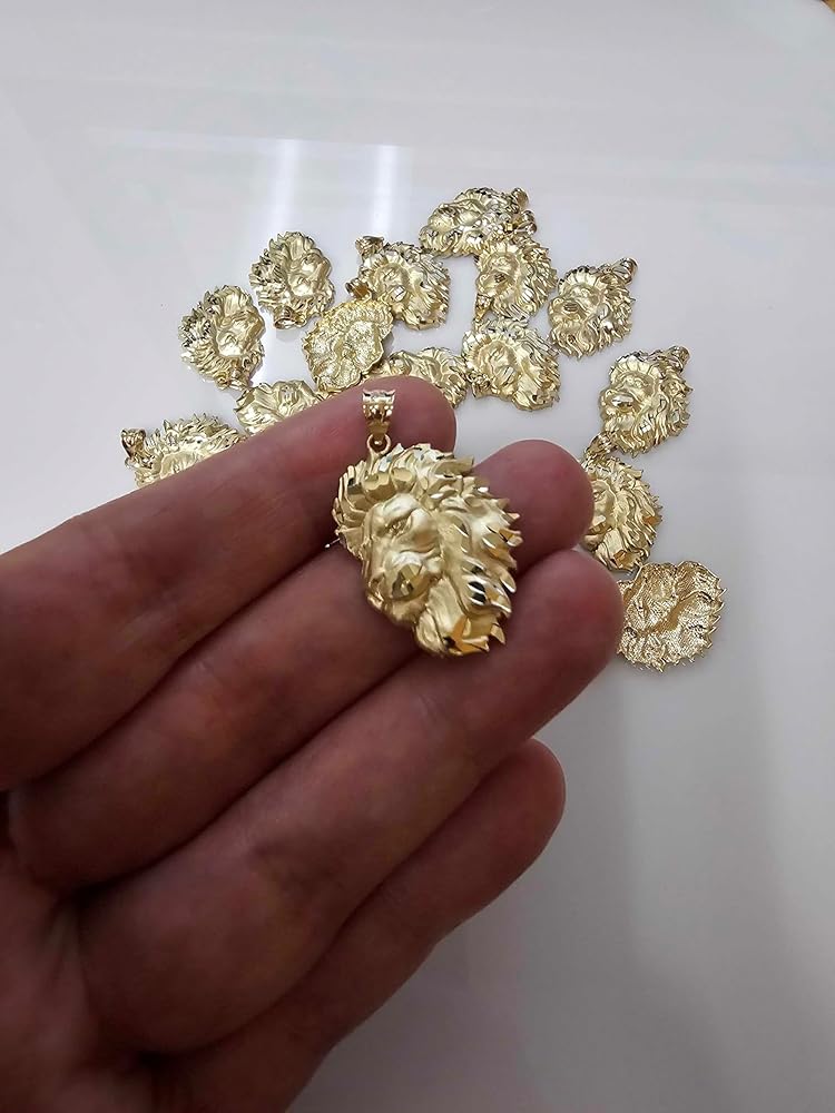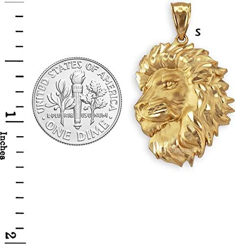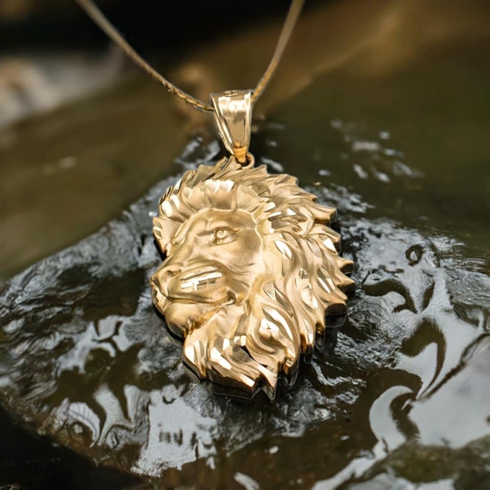 10K Yellow Gold Satin Lion Head Leo Diamond-Cut Pendant Necklace