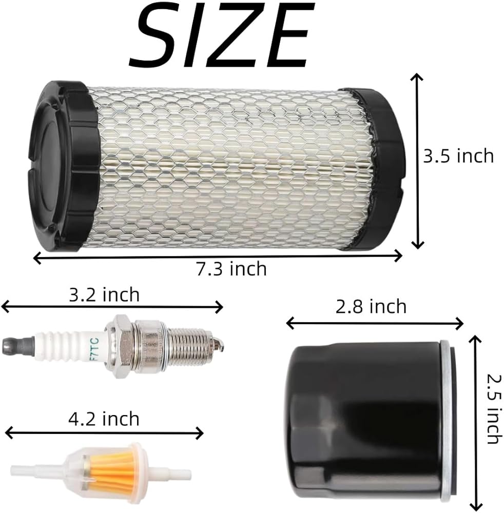 You will Get:Package includes 1pcs air filter, 2pcs fuel filter, 1pcs oil filter and 1pcs spark plug, convenient for you to carry out golf cart maintenance.