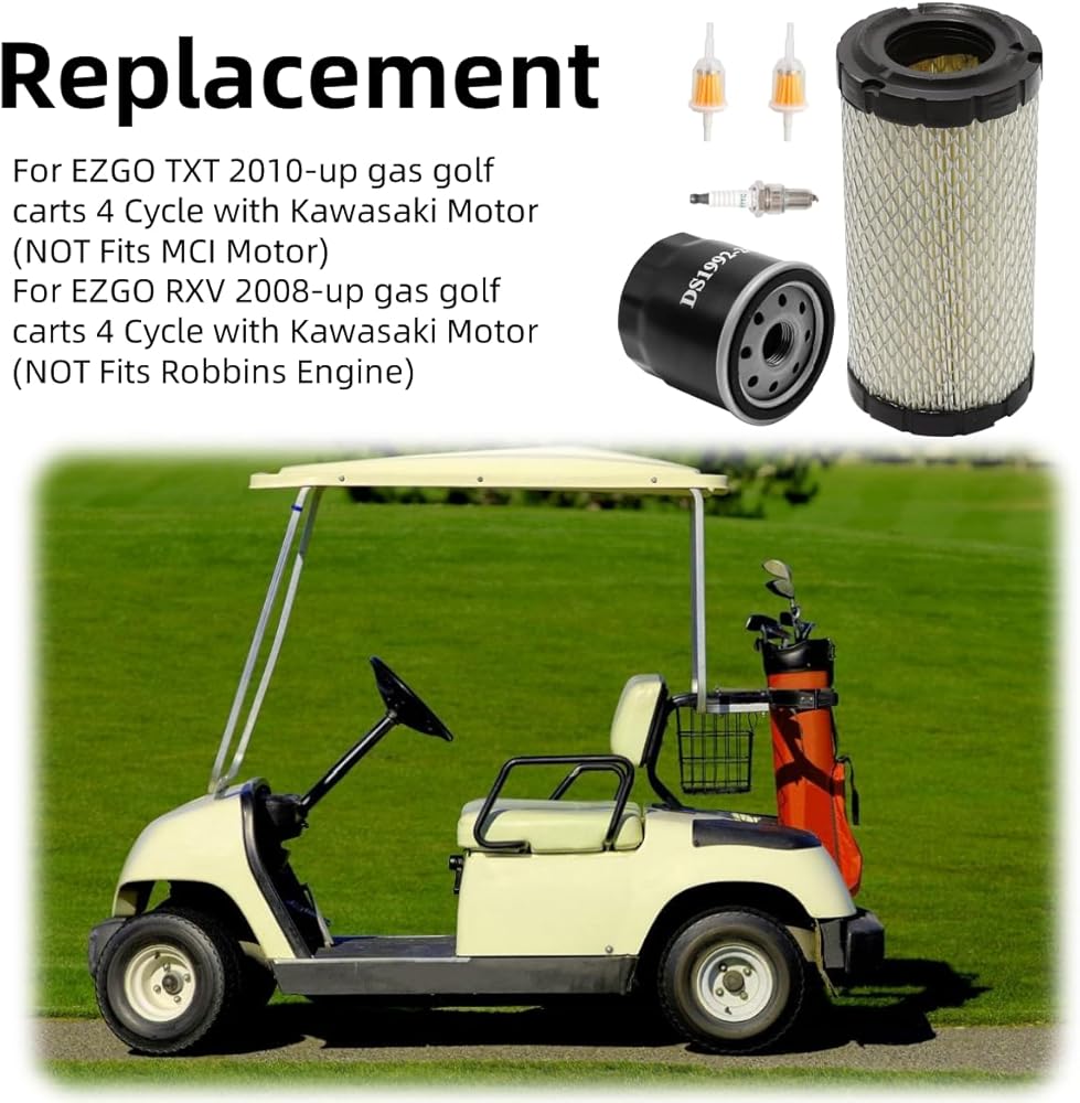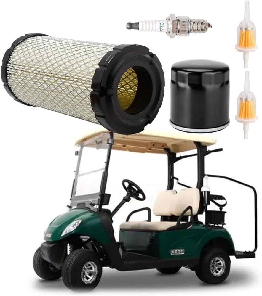 Replaces Part Number: This kit accessory is a replacement for EZGO part numbers FIL-1007, 611879, 2147 as well as replacement air filter 28463G01 28463-G01, fuel filter 72084G01 72084-G01, oil filter 607454 and spark plug 607462.