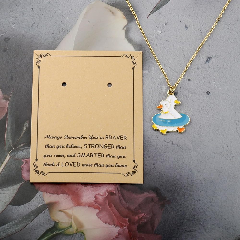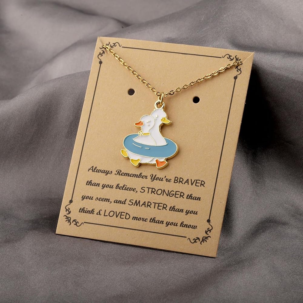 قلادة بطة ملهمة مع بطاقة هدايا تحفيزية - تذكر دائمًا أنك أكثر شجاعة مما تعتقد، وأقوى مما تبدو عليه، وأذكى مما تعتقد وتحب أكثر مما تعلم. بطة له لها.