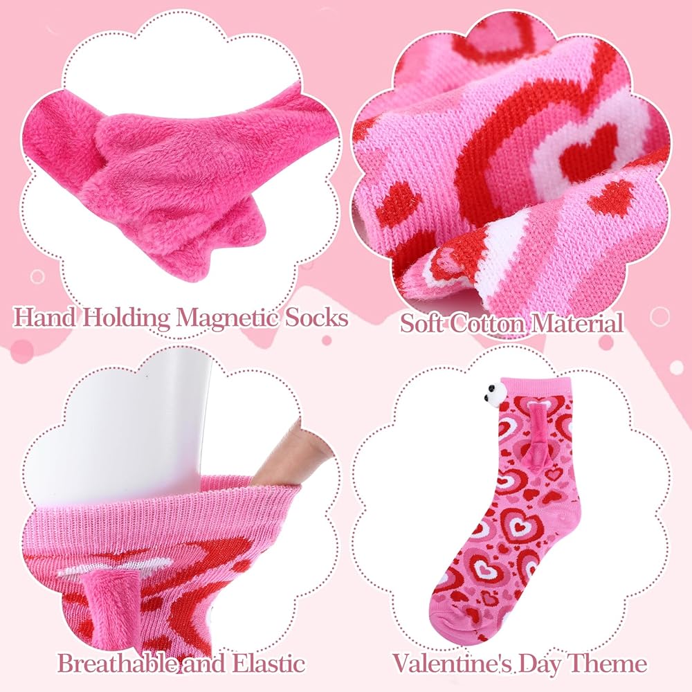 Package Includes: You will receive 4 pairs of magnetic holding hands socks in four colors: pink, red, white, and black. These hand holding socks can meet your daily needs well and can also be shared with family and friends as holiday gifts.