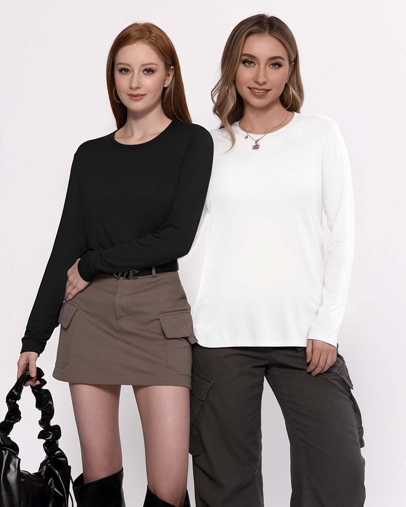 تصميم كلاسيكي: تتميز القمصان النسائية ذات الأكمام الطويلة برقبة دائرية كلاسيكية. ستكون القمصان النسائية العادية واحدة من الأساسيات المفضلة لديك لترتديها