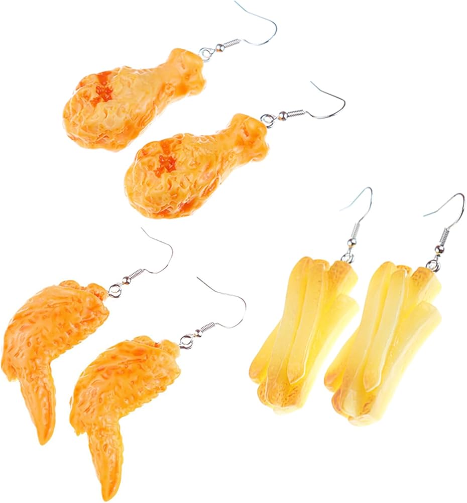 Funny Earrings:Realistic chicken legs, chicken wings and French fries! It's a statement made by those who love fried food! These earrings, fun and stylish, are a bright accessory whether you're attending a themed party or wearing them on a daily basis.