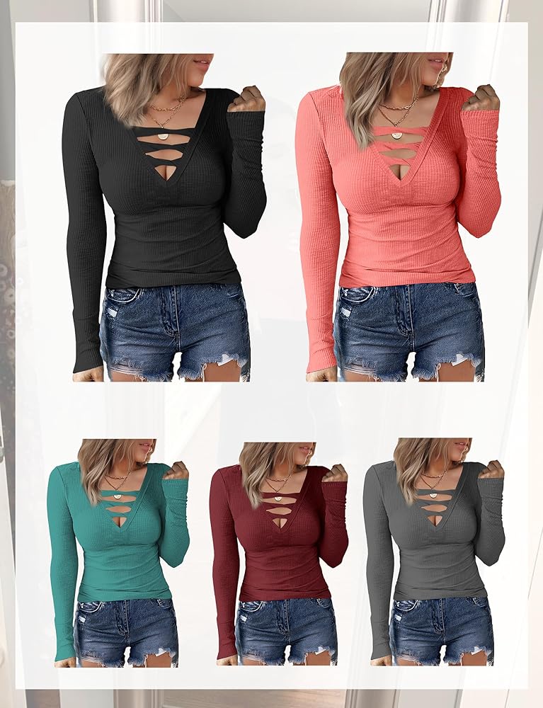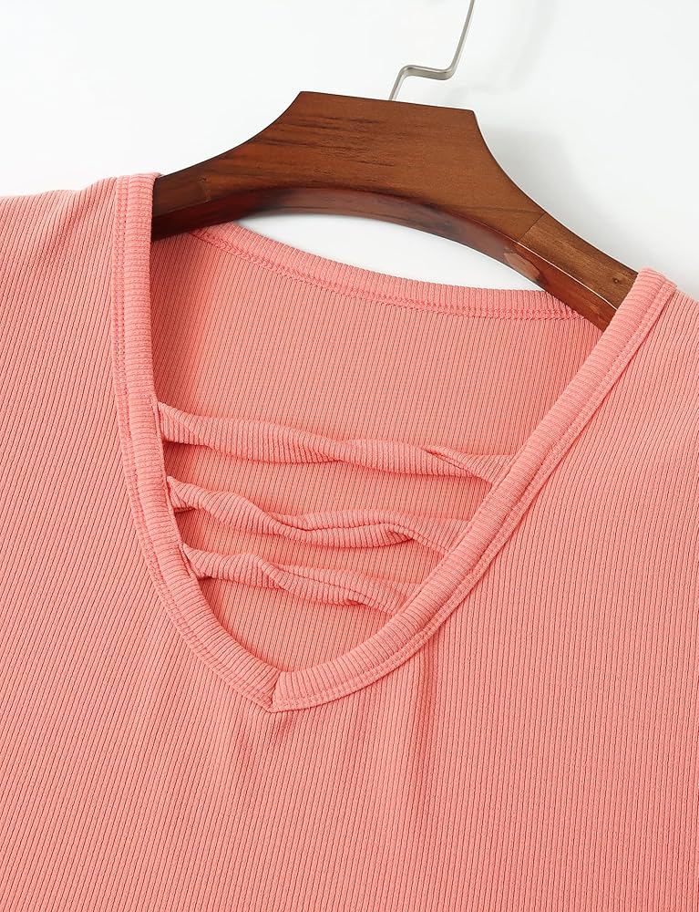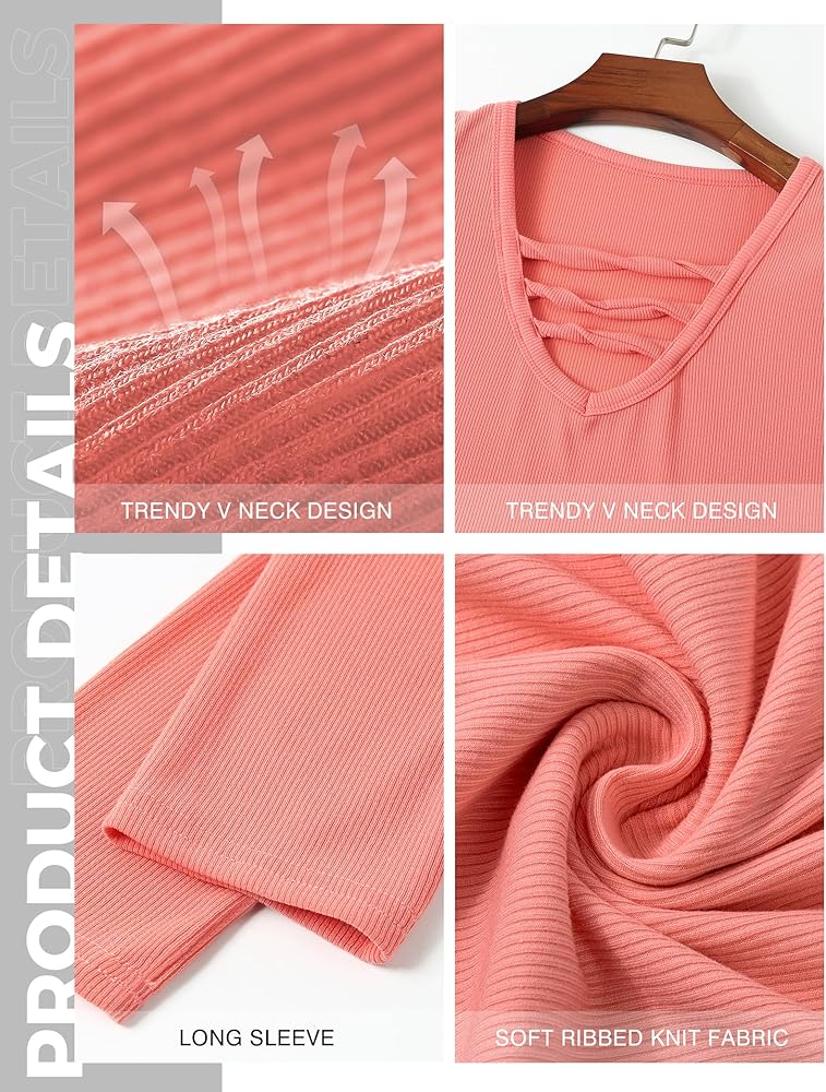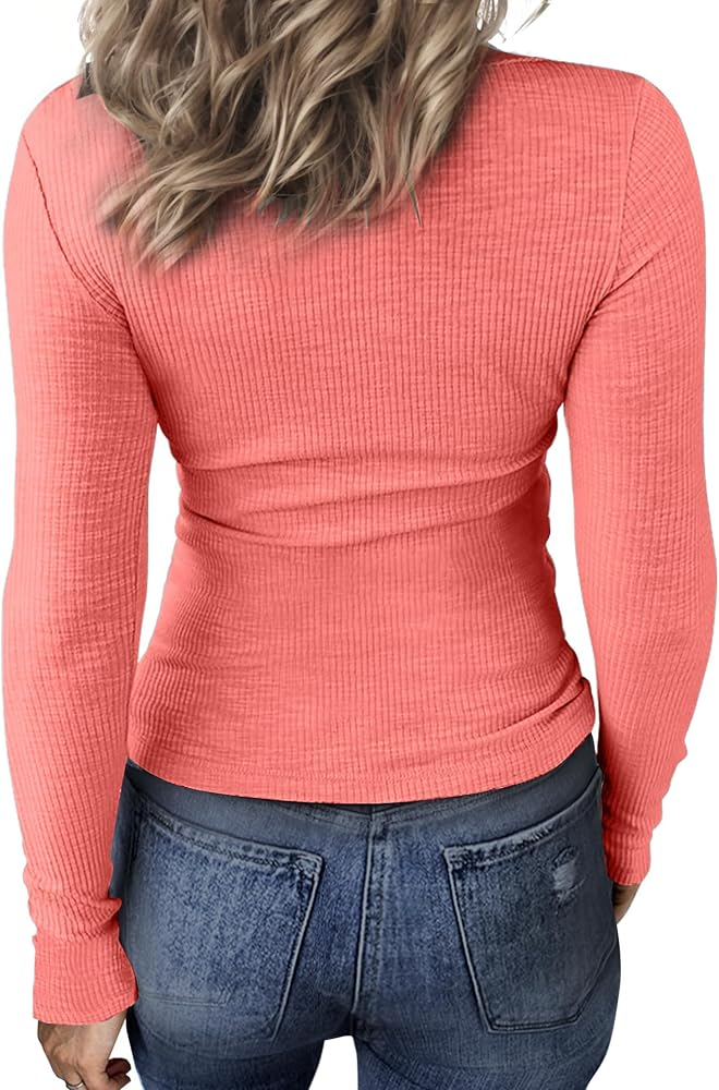 Buauty المرأة الخامس الرقبة طويلة الأكمام المجهزة الحرارية تونك تي شيرت متقاطع مضلع قميص غير رسمي سليم بلوزة وردي أحمر
