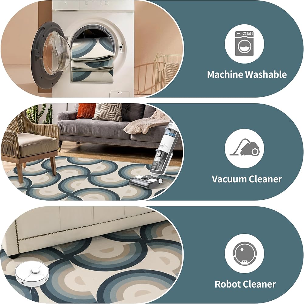 【قابلة للغسل في الغسالة】يمكن غسل هذه السجادة في الغسالة ويسهل العناية بها. إذا بقي سائل أو أوساخ زائدة على سطح السجادة وترغب في تنظيفها بالكامل، اغسلها في الغسالة بلطف بالماء البارد (لا تضيف مبيضات) وجففها بالهواء أو تجفف بالمجفف.