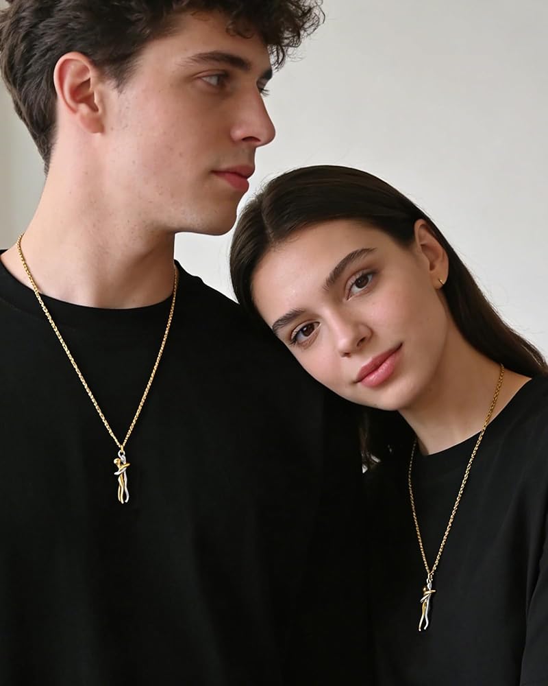 Love Hug Necklace: Crafted with meticulous attention to detail, two figures, one male and one female, stand bare, passionately and eternally embraced. This handcrafted masterpiece represents the enduring power of love and human connection.