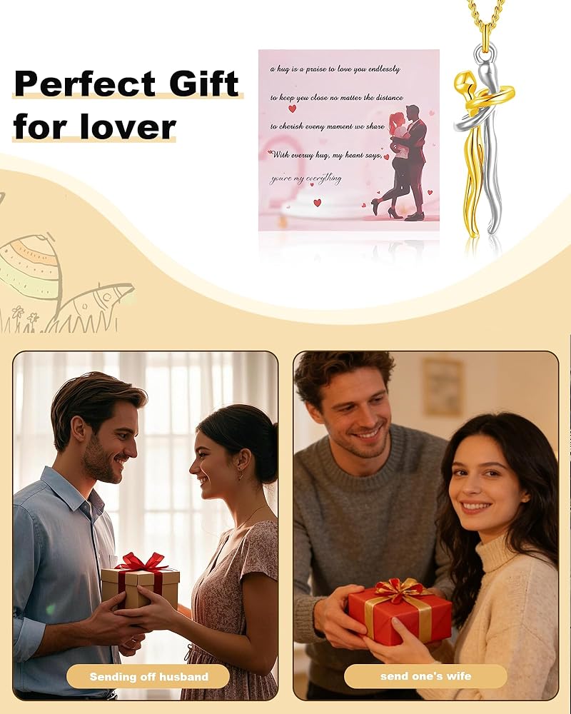 Hug Necklace:You will get 1 piece hug pendant necklace.Made of high-quality material, the hug necklace is rust-resistant and corrosion-resistant, with a highly polished surface for a better wearing experience.Designed for everyday wear, this affectionate hug necklace exudes simplicity and elegance, making it a perfect gift for any occasion and adding a feminine charm to any style.