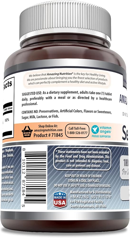 صيغ مذهلة ملحق السيلينيوم | 100 ميكروجرام لكل جرعة | 250 حبة | غير معدل وراثيًا | خالي من الغلوتين | صنع في الولايات المتحدة الأمريكية