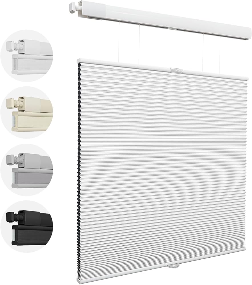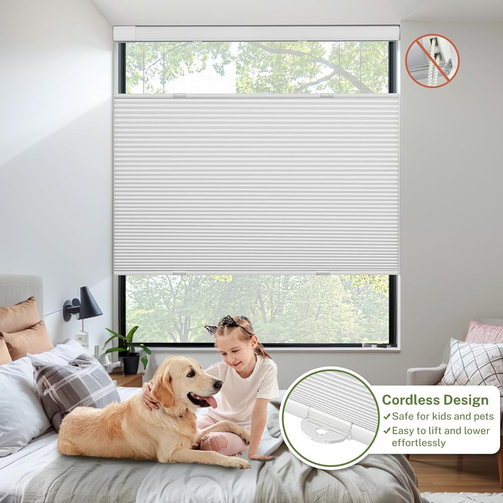 ظلال خلوية لاسلكية من أعلى إلى أسفل من MiLin بدون حفر، ألوان متطابقة بدون أدوات، ستائر خلوية لستائر وظلال بتصميم قرص العسل لنظام Windows (أبيض معتم، 27 بوصة عرض × 64 بوصة ارتفاع)