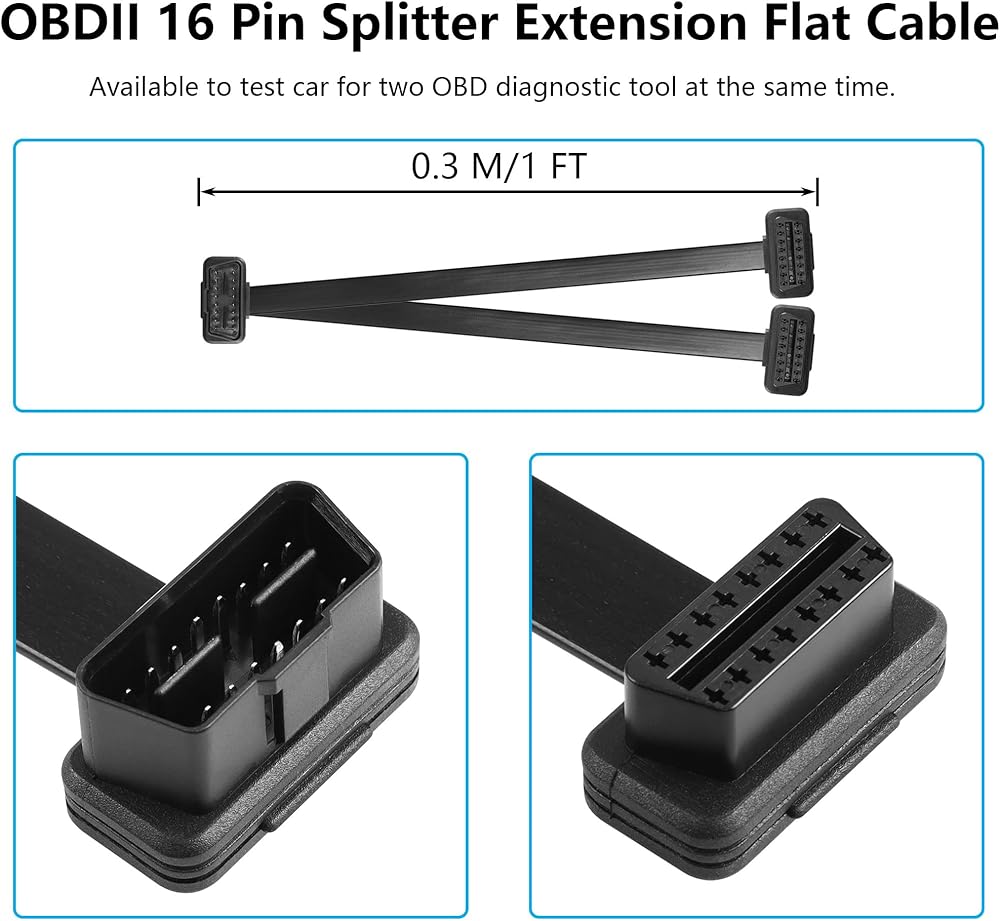 OBD2 OBD II 16 Pin Splitter Extension Cable can be used to plug into an OBD-II compliant vehicle, available to test car for two OBD diagnostic tool at the same time. No pressure for multiple devices to work together.