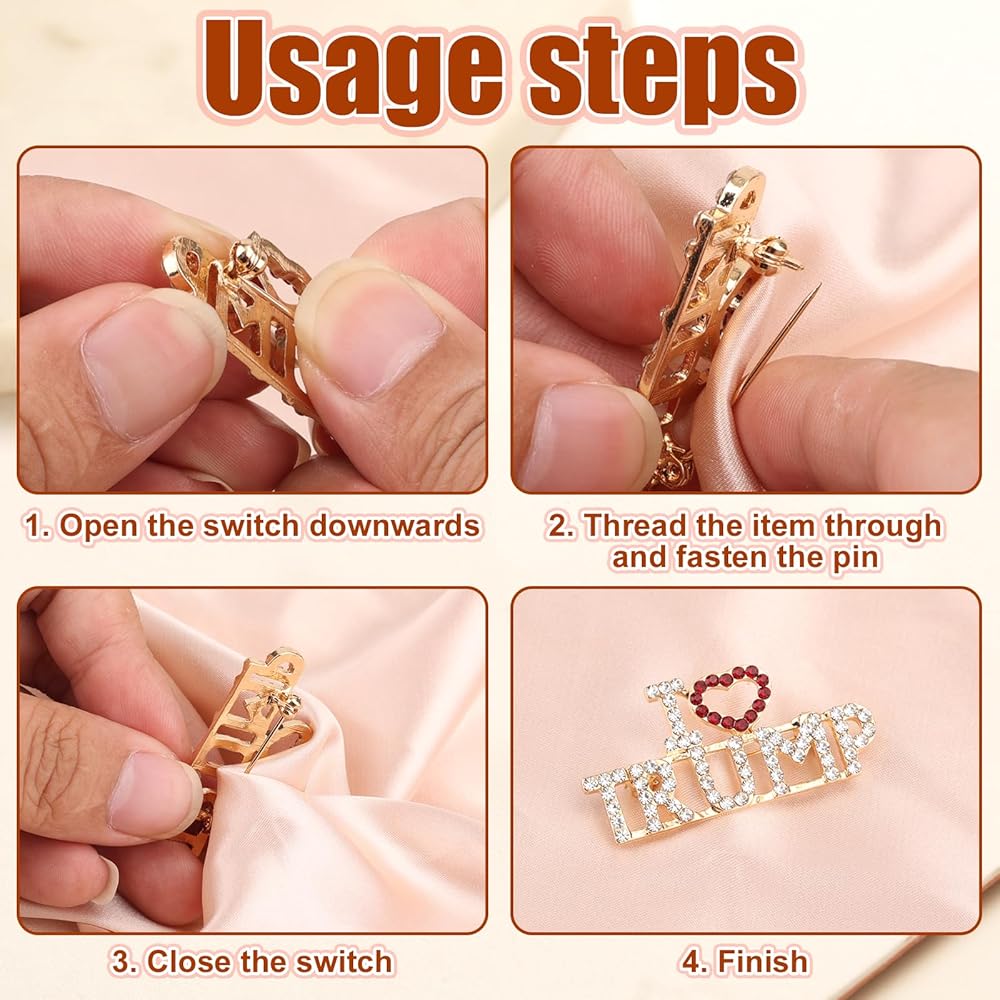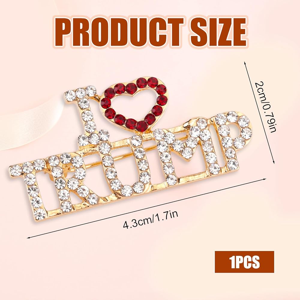 Quality Material: Our Trump brooch is crafted from zinc alloy, this pin is long-lasting and beautiful, it is crystal design makes it eye-catching.