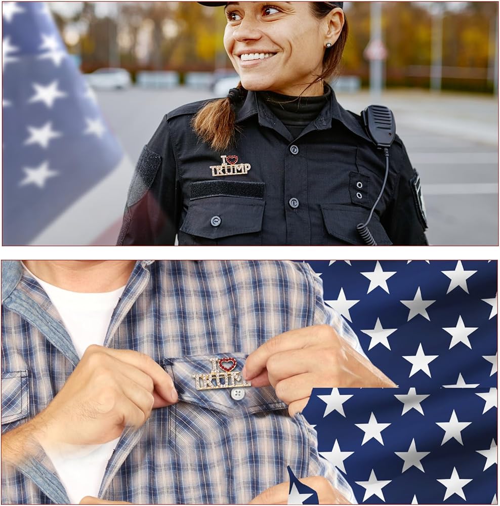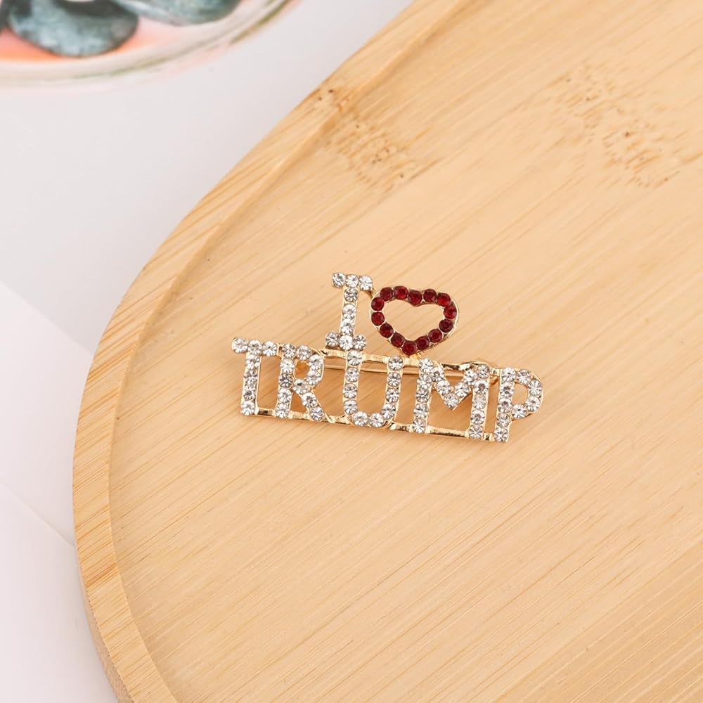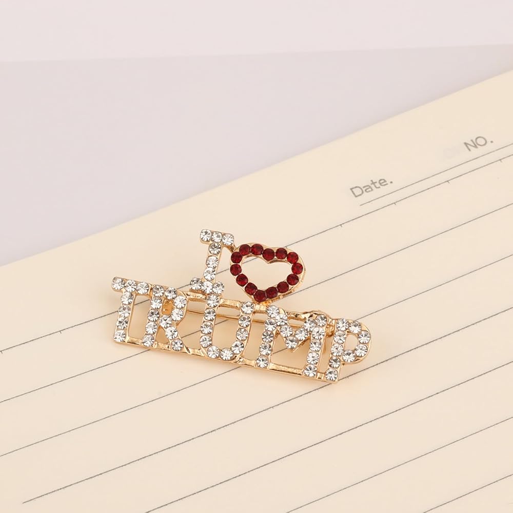 بروش كريستال ترامب، دبابيس دونالد ترامب مع قلب رسمي ترامب 2024 طية صدر السترة مع دبوس قلب أنا أحب دبوس ترامب للهدايا التذكارية للانتخابات الرئاسية بضائع ترامب