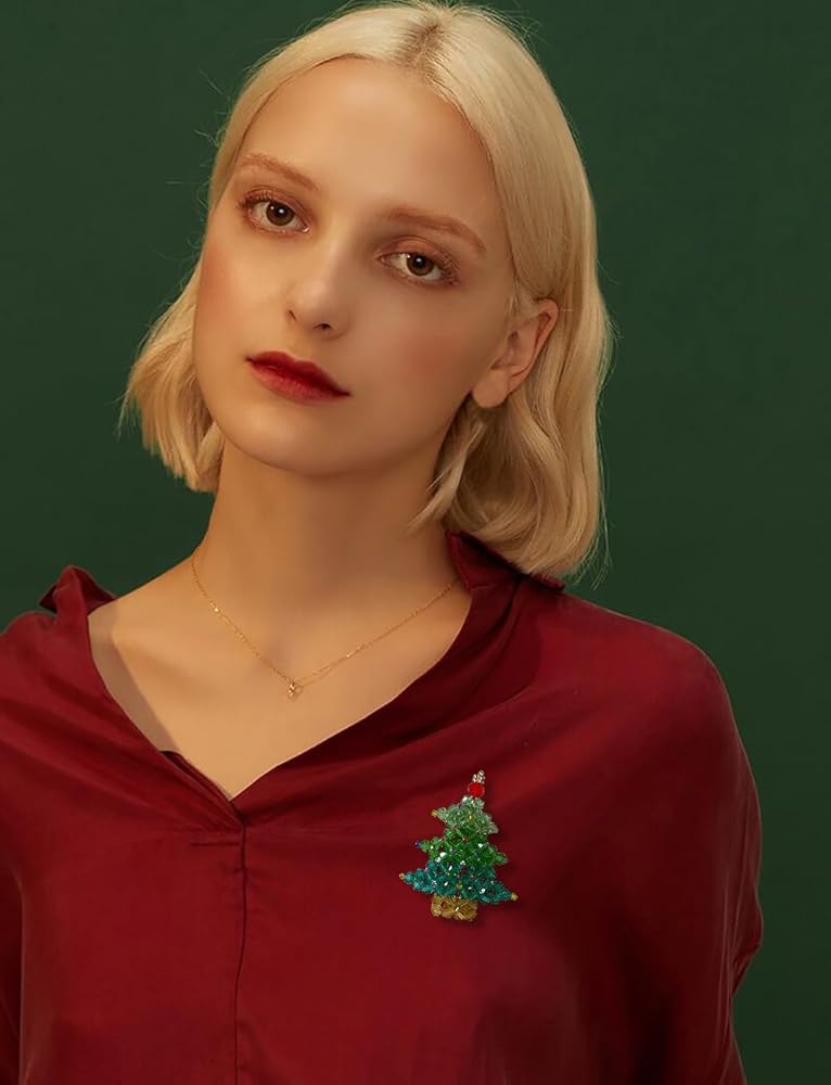 • Festive Design: This Christmas tree brooch pin features a vibrant crystal-studded design perfect for the holiday season.