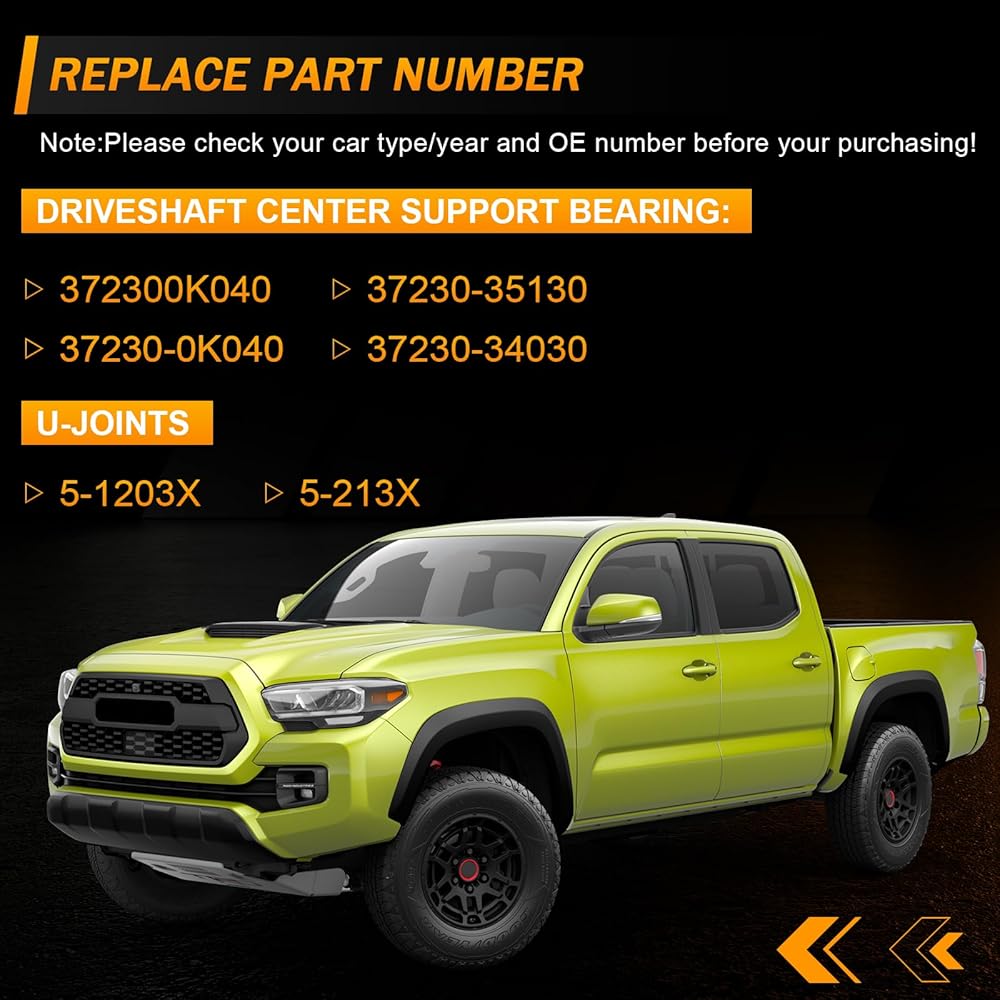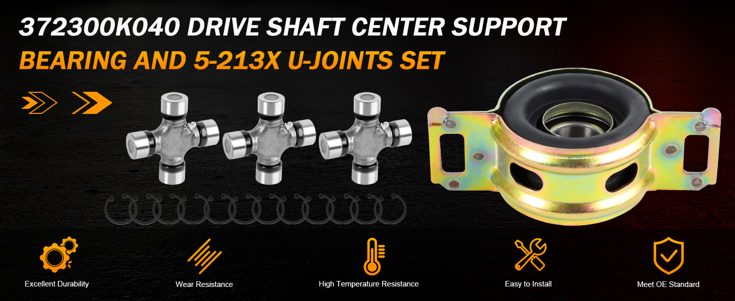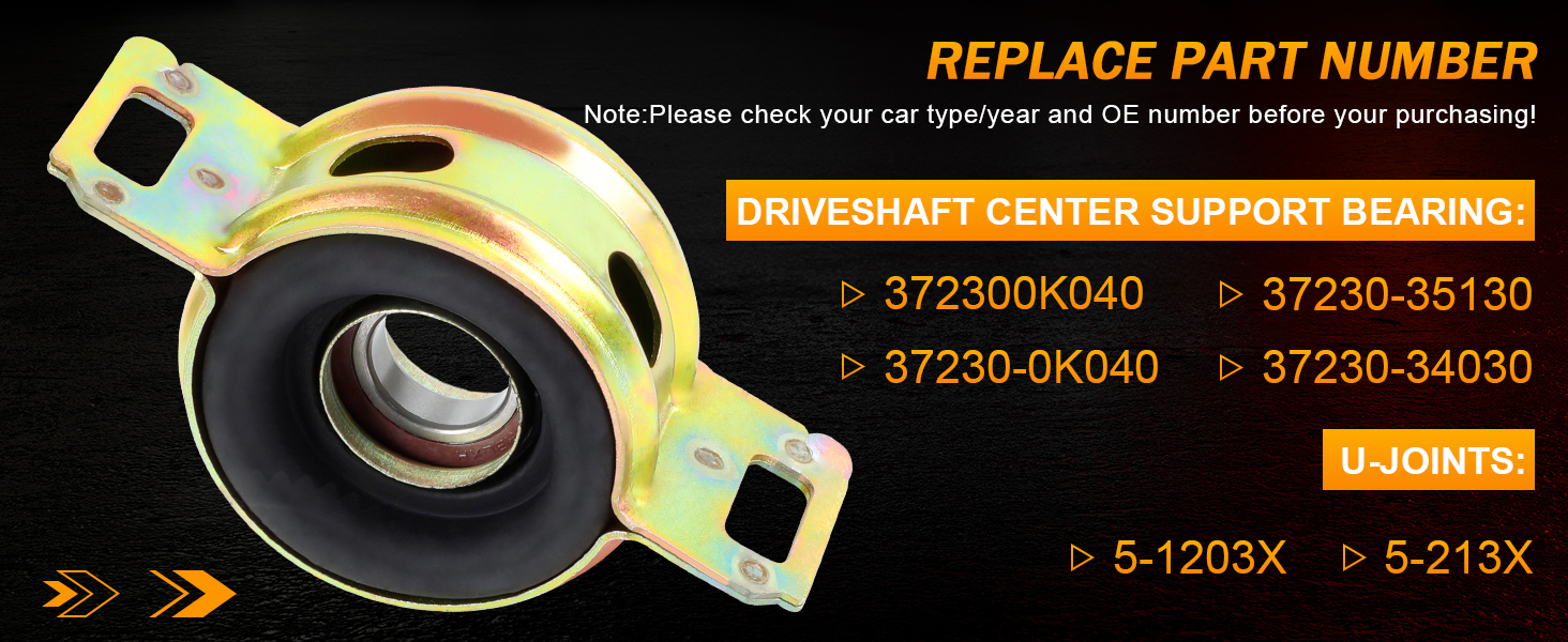[𝐑𝐞𝐩𝐥𝐚𝐜𝐞 𝐏𝐚𝐫𝐭 𝐍𝐮𝐦𝐛𝐞𝐫]-الرقم الأصلي البديل لمحمل دعم مركز عمود الإدارة لدينا هو 372300K040,37230-0K040.الرقم الأصلي البديل لـ المفاصل U هي 5-1203X، 5-213X. تتضمن العبوة: محمل مركزي لعمود محرك الأقراص 1x، مفاصل 3xU