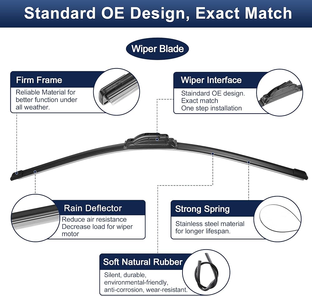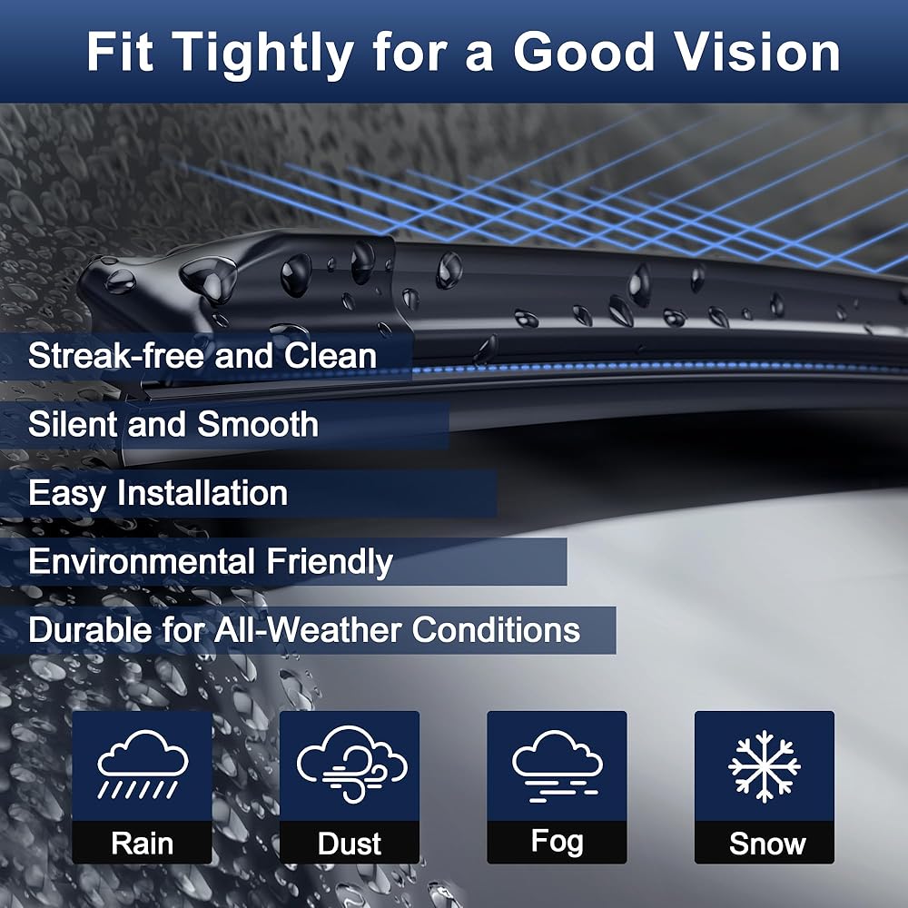 [تجربة مستخدم مرضية] رؤية واضحة وخالية من الخطوط. هادئ بدون ضوضاء غير طبيعية. لجميع الظروف الجوية المواسم لإزالة الماء أو الأوساخ أو الحطام من الزجاج الأمامي الخاص بك. تعزيز تجربة القيادة الخاصة بك تماما.