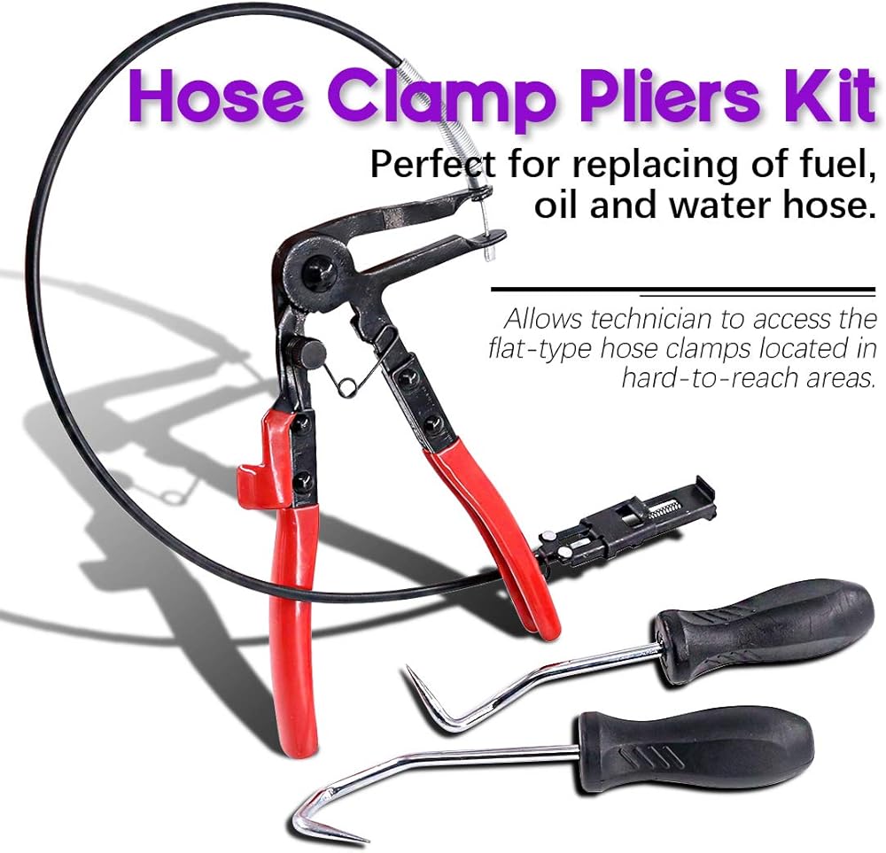 • ♥ HIGH QUALITY ----- Our Products are selected high quality material, The Hose Clamp Pliers have more Extra Sturdy Carbon Steel cable prevents twisting and breaking, which is common in inexpensive cabling tools. The Hose Clamp Removal Hook Set also have Durable Chromoly Vanadium construction.