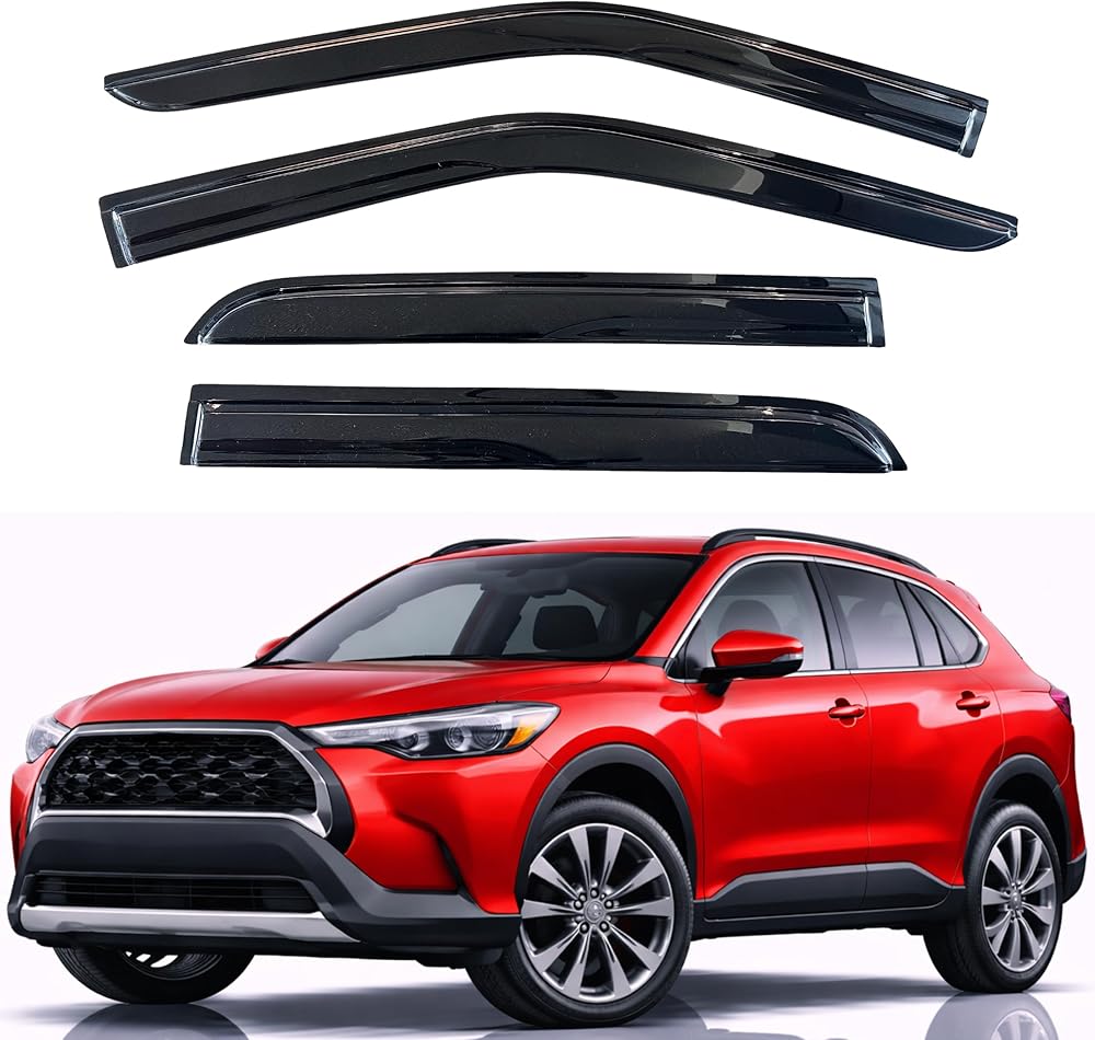 【ملاءمة مثالية】أقنعة نافذة KPY واقيات المطر وحارفات فتحات التهوية المتوافقة مع Toyota Corolla Cross 2022 2023 2024 (نمط Mugen)