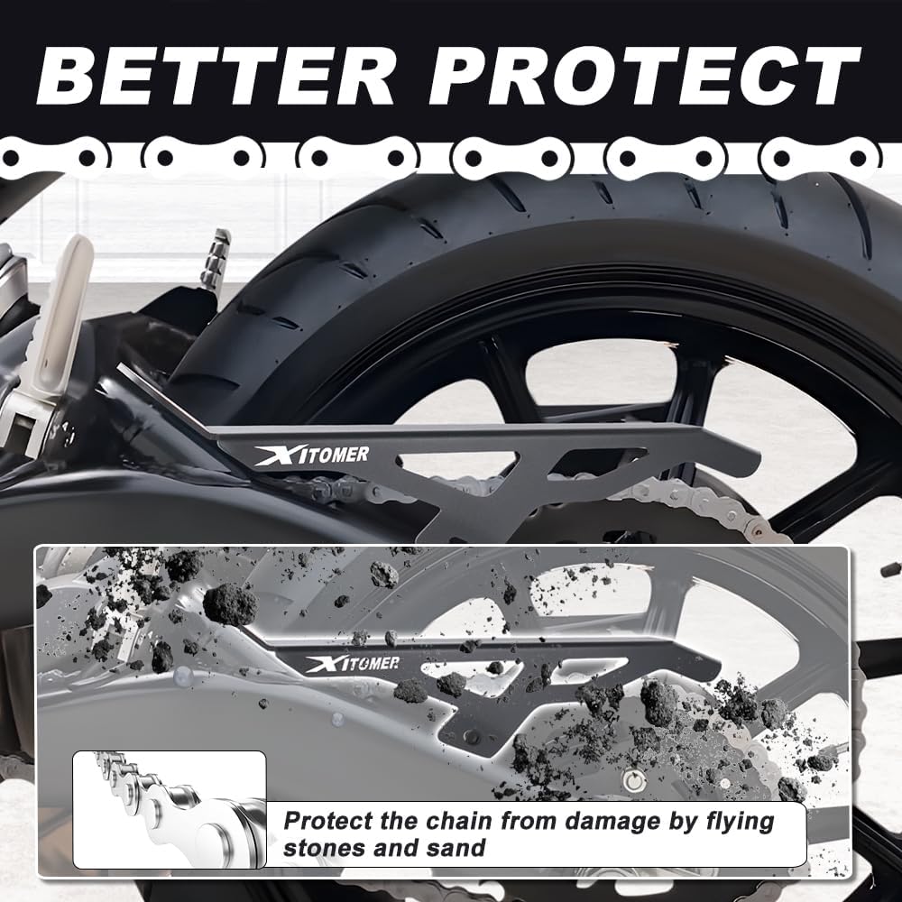 - A chain cover protector makes your motorbike look neater and more beautiful. It covers the chain and sprockets, giving the bike a smoother look.