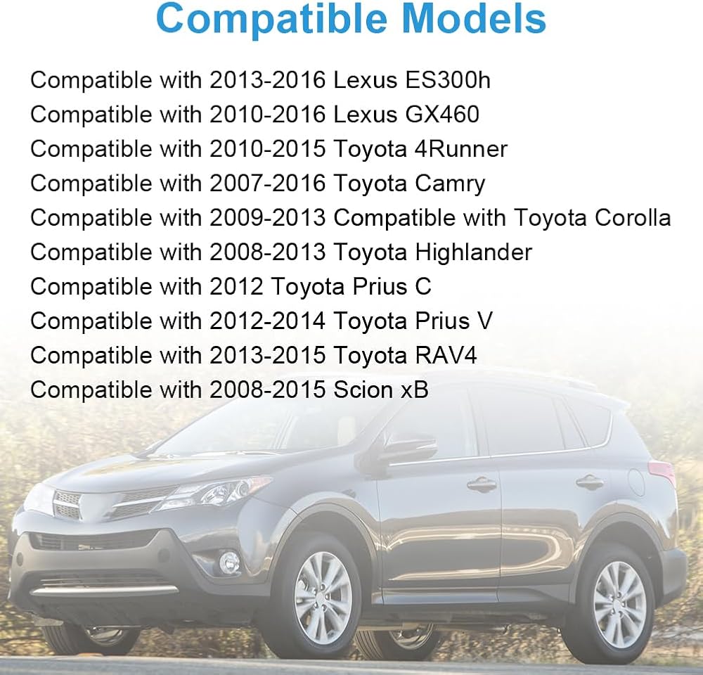 نموذج التكيف: متوافق مع 2013-2016 لكزس ES300h، 2010-2016 لكزس GX460، 2010-2015 تويوتا 4 رنر، 2007-2016 تويوتا كامري، 2009-2013 تويوتا كورولا، 2008-2013 تويوتا هايلاندر، 2012 تويوتا بريوس سي، 2012-2014 تويوتا بريوس V، 2013-2015 تويوتا RAV4، 2008-2015 سليل xB