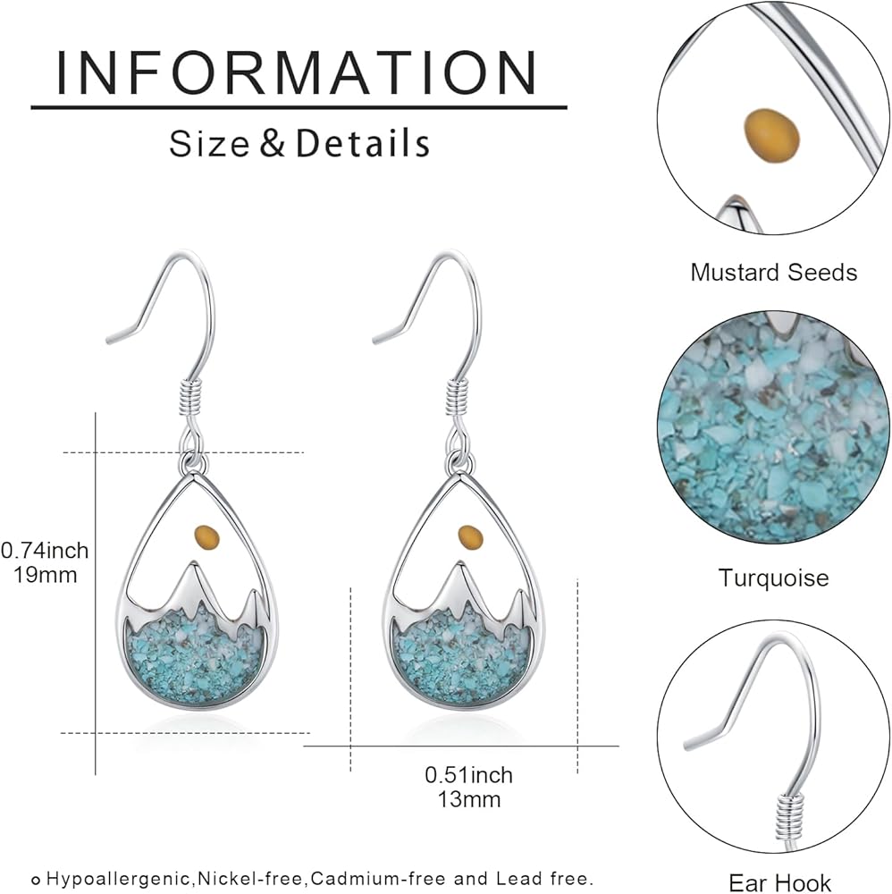 • 【تصميم مجوهرات بذور الخردل】: تستخدم هذه الأقراط على شكل دمعة بذور الخردل وعناصر الجبال مع اللون الفيروزي مما يعني "إيمانك يمكنه تحريك الجبال"، مما يجعلها غامضة وساحرة. يمثل الفيروز الحظ السعيد والصحة والرخاء والحماية. إن ارتداء الأقراط الفيروزية سيسمح لإيمان بذور الخردل أن يتجذر ويرشدك في الاتجاه الصحيح.
