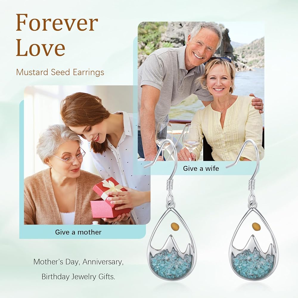Midir&Etain أقراط بذور الخردل S925 فضة أقراط الجبل الفيروزية المسيحية الإيمان من بذور الخردل أقراط الهدايا الدينية مجوهرات للنساء