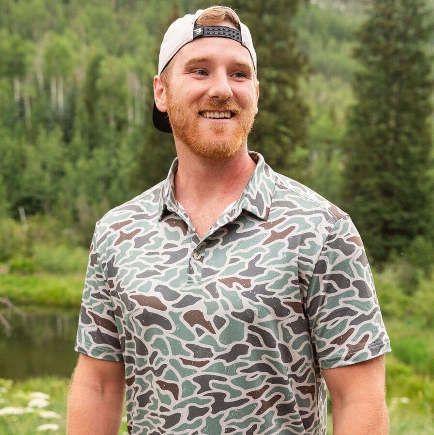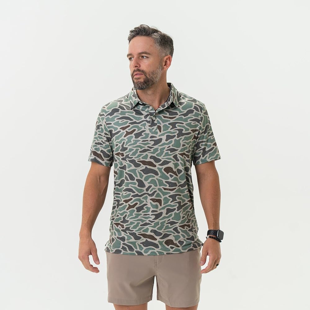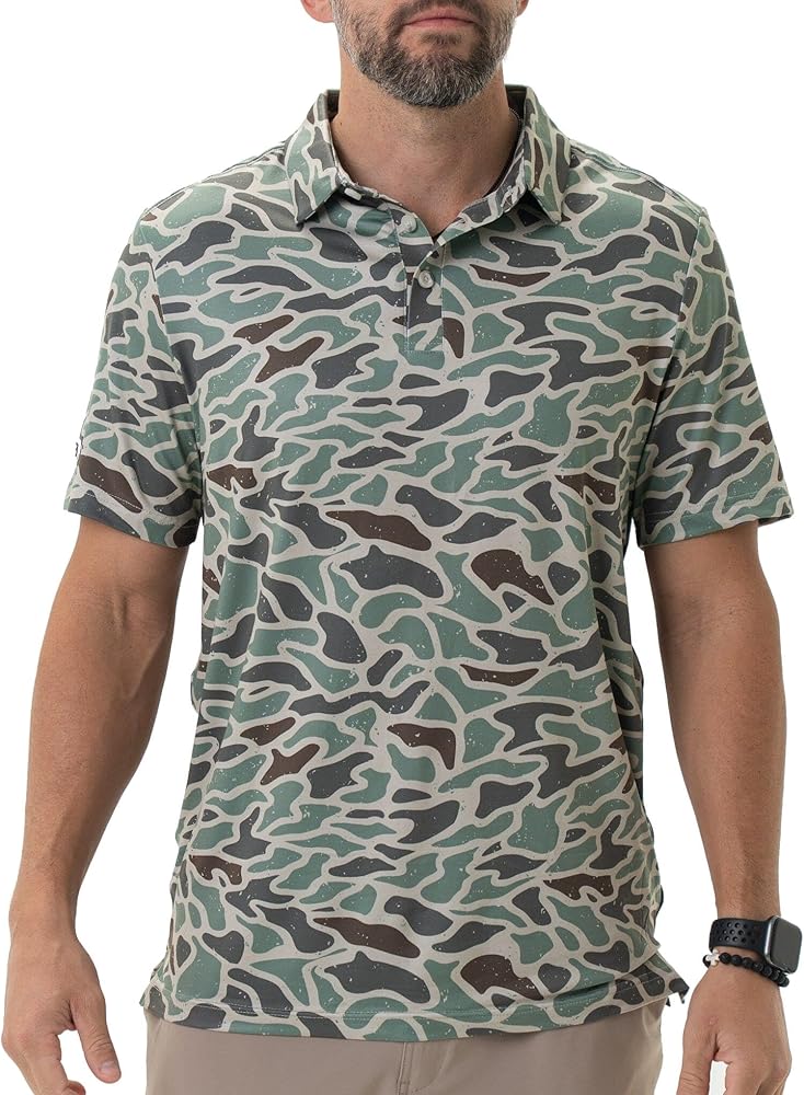 قميص بولو جولف بيرفورمانس بأكمام قصيرة للرجال من Burlebo (مموه البط القديم، مقاس متوسط)