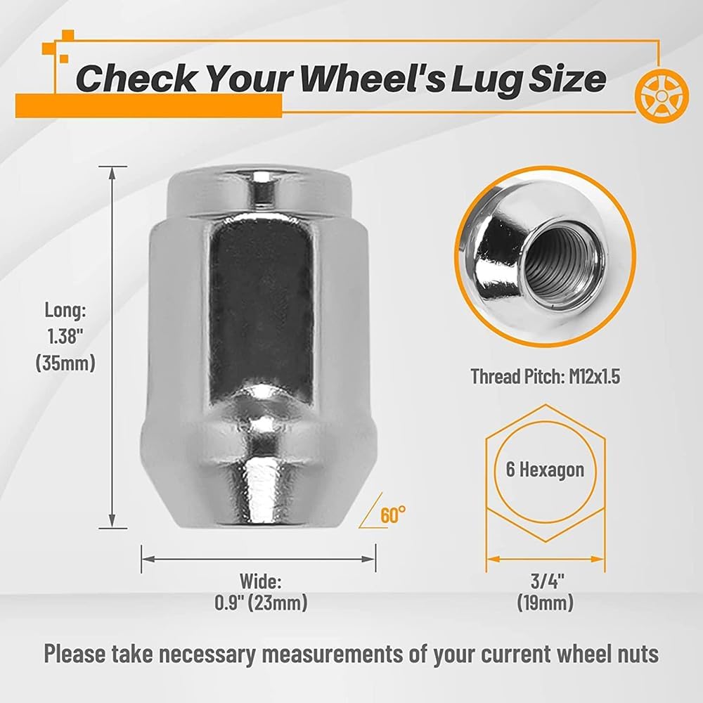 M12x1.5 صواميل العروة كروم، 24 قطعة 12x1.5 صواميل عجلة ما بعد البيع متوافقة مع تشيفي كولورادو تريل بليزر جي إم سي كانيون إنفوي تويوت-a 4Runner Tacoma Tundra FJ Cruiser GX460 GX470 موالف مغلق