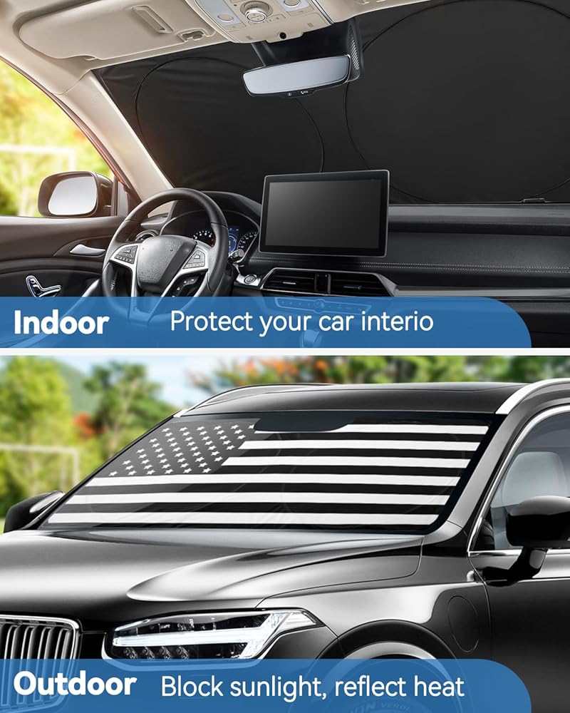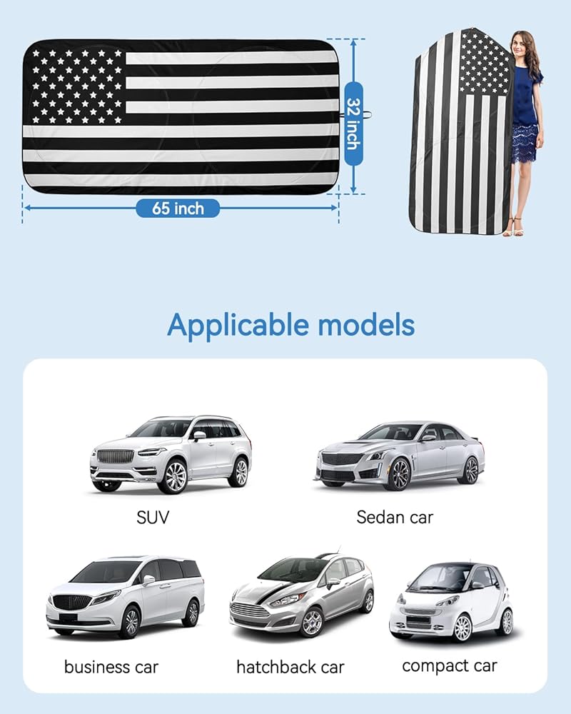 • مظلة شمسية للزجاج الأمامي للسيارة كلب لطيف: يبلغ طول مظلة الشمس للزجاج الأمامي للسيارة ذات الحجم القياسي 65 بوصة وعرضها 32 بوصة قابلة للتعديل ويمكن أن تناسب بشكل جيد الزجاج الأمامي للسيارة الذي لا يتجاوز قياس 65 بوصة × 32 بوصة