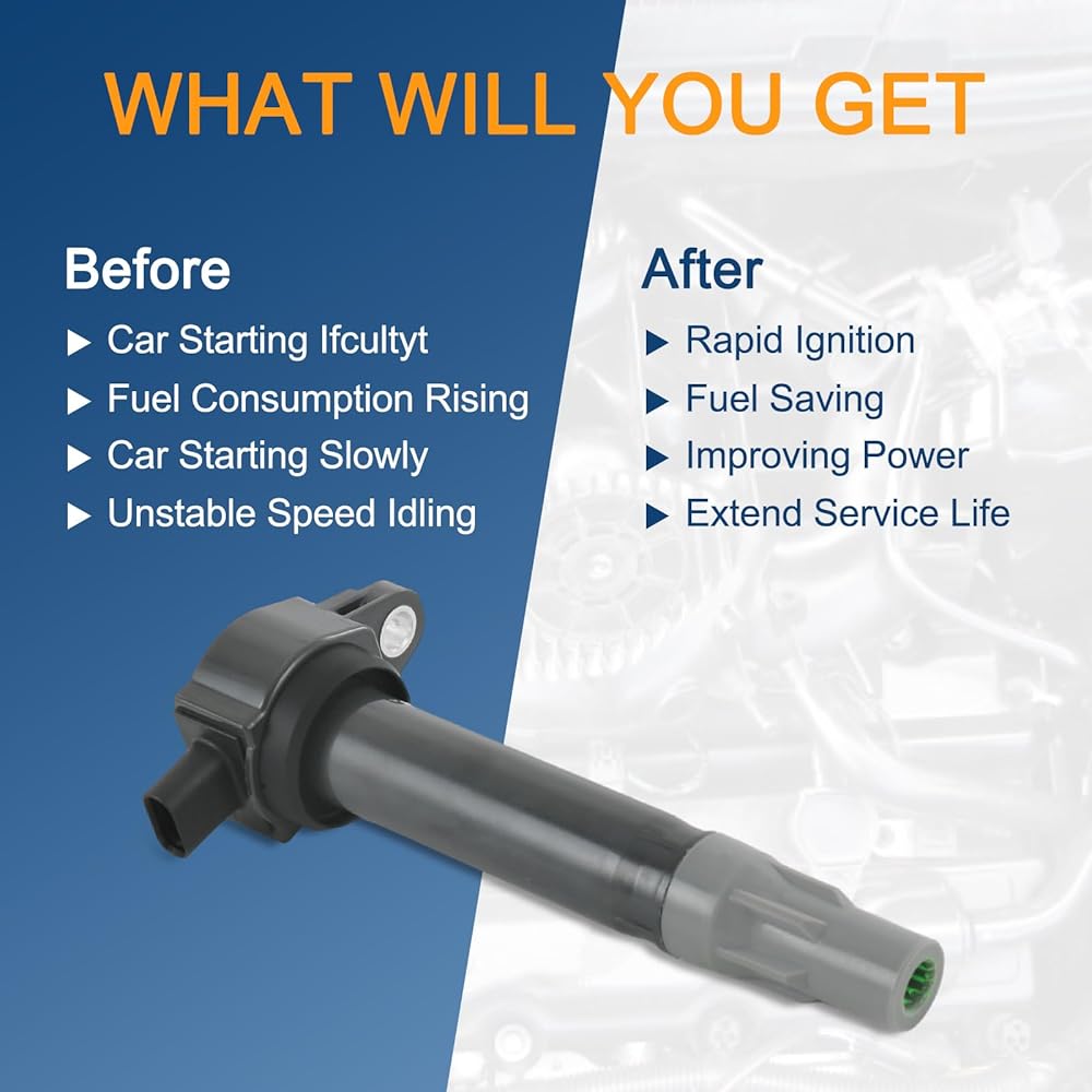 [جودة عالية] مصنوعة من مواد عالية الجودة. ملفات الإشعال التي تناسب سيارتك. يمكنه حل المشكلات الناجمة عن فشل الملفات مثل اختلال المحرك، أو تباطؤ المحرك الخام، أو انخفاض الطاقة، أو ضعف الاقتصاد في استهلاك الوقود، وما إلى ذلك.